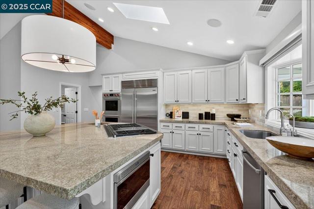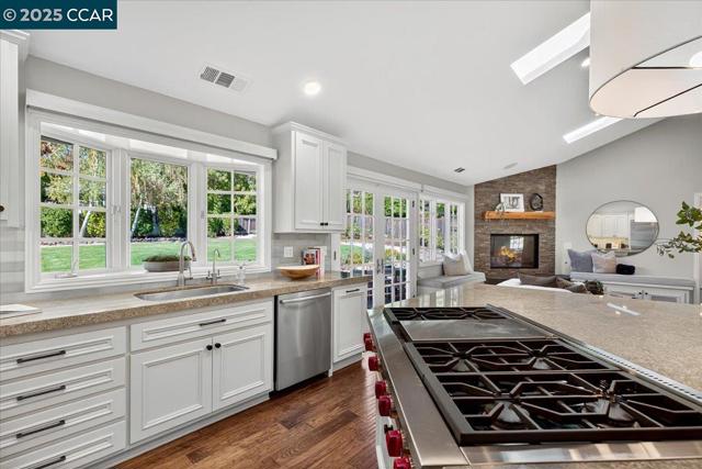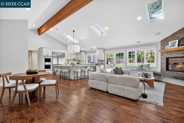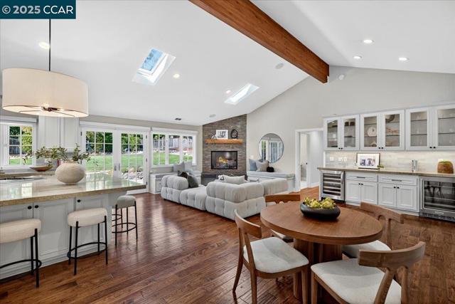 Elegant yet approachable, this beautifully updated Orinda rancher blends classic charm with modern updates. Nestled in the heart of Sleepy Hollow, one of Orinda’s most coveted neighborhoods, this 3112± sq ft, five-bedroom, three-and-a-half-bath home perfectly balances function, comfort, and timeless style. Designed for the way families live today, every space feels intentional and functional. High end finishes can be found throughout – lighting, tile, custom window treatments and heated floors in every bathroom. The single-story layout provides connectedness, while formal living and dining rooms offer ideal separation of space. The expansive great room serves as the central gathering place. A chef’s kitchen boasts a Wolf range and double oven, and an oversized island with seating for six. The separate bar area with wine and beverage refrigerators and ample storage rounds out the space. French doors open from the great room to a flat grassy yard, ideal for play, entertaining, or future customization. Just about a mile from Sleepy Hollow Elementary and minutes to downtown, this home offers a quiet location where neighbors walk and bike daily. Access to 12+ years of top-rated Orinda schools. Classic, cozy and completely dialed — the Orinda home you’ve been waiting for.