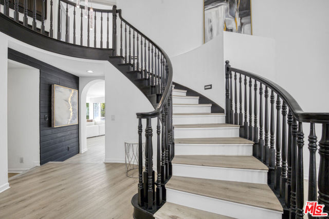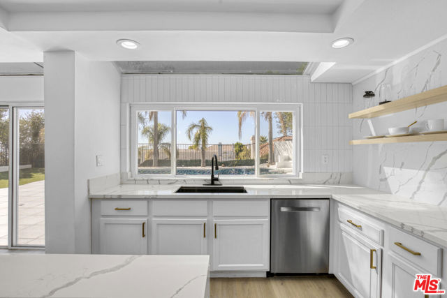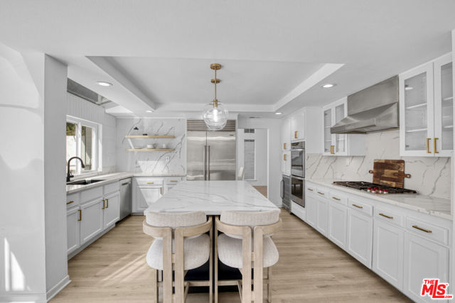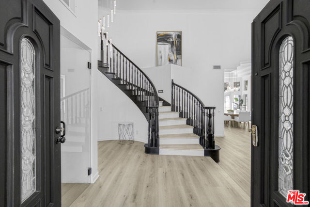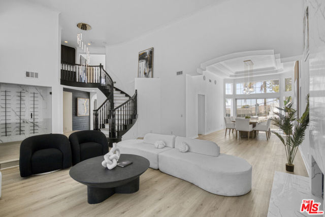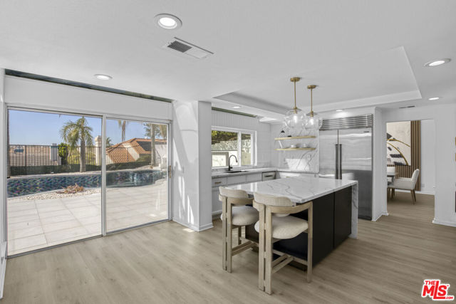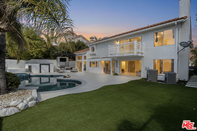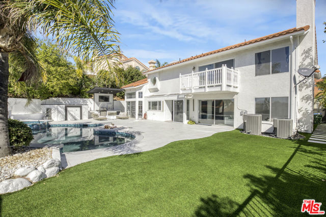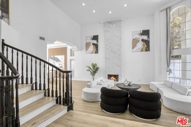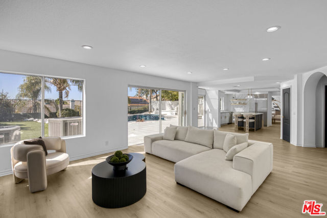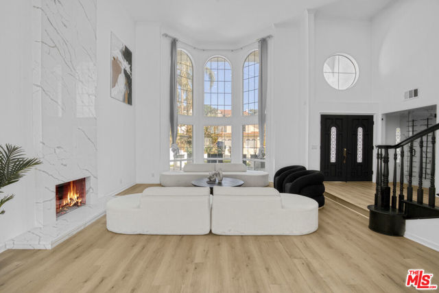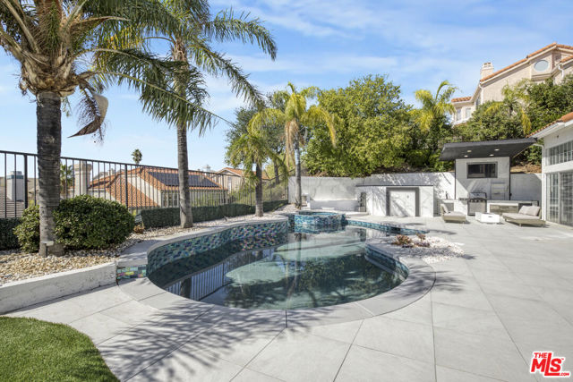 Welcome to this fully remodeled designer home in the prestigious guard-gated Porter Ranch Estates. Every inch of this rare residence has been beautifully reimagined, showcasing new flooring, three modern fireplaces, a fully upgraded kitchen and bathrooms, and a completely redesigned pool with an outdoor kitchen. Step through the grand double-door entry into an impressive foyer with soaring ceilings. The formal living and dining rooms exude elegance, featuring a statement fireplace and high-end finishes throughout. The spacious family room offers another fireplace, custom built-ins, and seamless flow into the gourmet kitchen complete with new stone countertops, Sub-Zero refrigerator, wine cooler, and a stunning view of the backyard.The main level also includes a bedroom and full bath, a laundry room, and direct access to the finished garage with built-in storage.Upstairs, you’ll find a large bonus room with its own fireplace ideal for a media room or lounge plus a luxurious primary suite offering tranquil views, a spa-inspired ensuite with a jacuzzi tub, and an oversized custom closet. Two additional bedrooms and a full bath complete the second level.The backyard is an entertainer’s dream, showcasing a resurfaced pool and spa, built-in outdoor kitchen, lush landscaping, and mature palm trees creating a true resort-style ambiance.Additional upgrades include recessed lighting, a tankless water heater, central vacuum system, updated Lennox HVAC, and custom window treatments.Located within the exclusive Porter Ranch Estates community, residents enjoy 24-hour guard security and resort-style amenities including pools, spas, tennis courts, volleyball and basketball courts, and a dog park all just minutes from top-rated schools, shopping, dining, and freeway access.