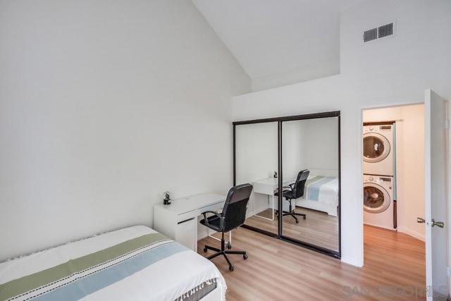 Welcome to the beautifully updated Canyon Bluffs Condo with Loft located on the edge of Sorrento Valley and Mira Mesa. This top-floor 2BR/2BA condo with a spacious loft (optional 3rd bedroom or office) offers unbeatable convenience, just 10 min to Qualcomm and 12 min to UCSD. Freshly painted and featuring new bathroom countertops, vaulted ceilings, and abundant natural light, this home feels open and inviting. The primary suite boasts dual sinks and a large walk-in closet. Highlights include a modern granite kitchen with custom cabinets, a cozy fireplace, an HVAC system, a spacious laundry room, and a private front patio. Two oversized walk-in attic spaces provide incredible storage or potential for expansion. Enjoy assigned parking, ample guest parking, and resort-style amenities including a pool, spa, and recreation room surrounded by lush greenbelts. Close to shopping, dining, and freeways—this home offers the perfect blend of comfort, style, and location.