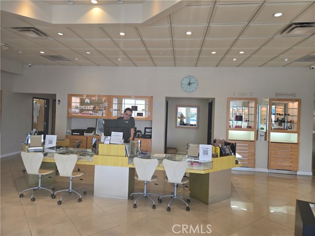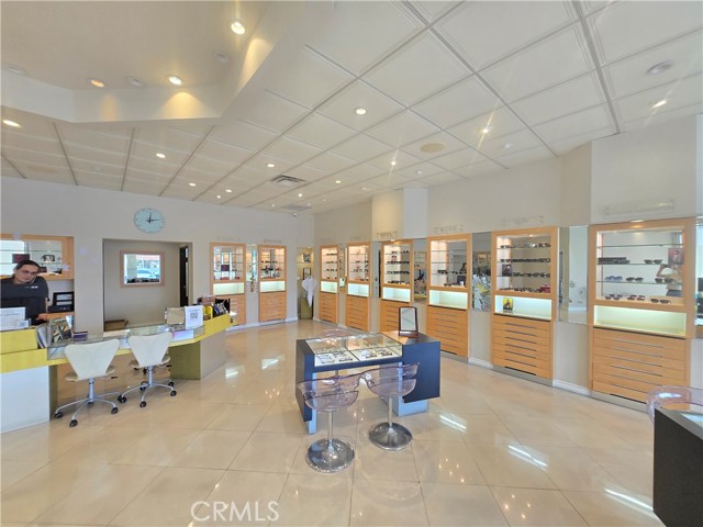 The store features luxury flooring, ceiling-mounted cabinets, stylish window coverings, a premium eyewear display area and optometry rooms .