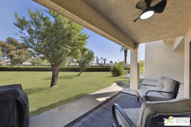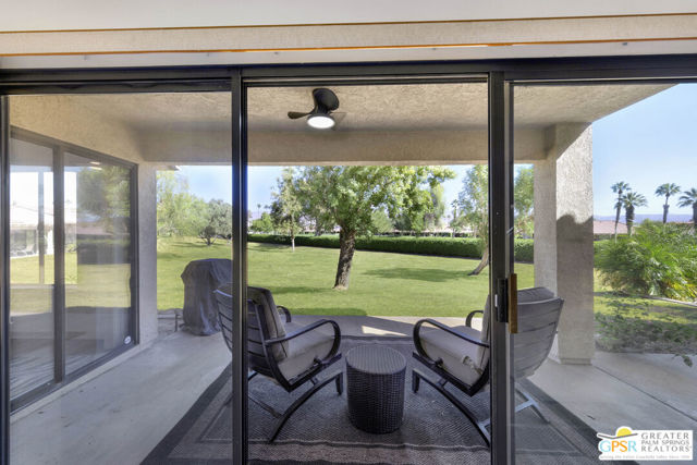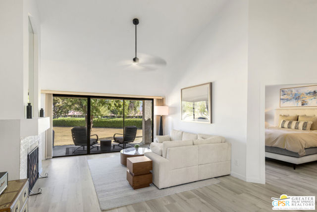 Turnkey End Unit with Green Belt & Mountain Views in The Resorter. Welcome to classic desert living in this beautifully updated 2-bedroom, 2-bath home located in the highly desirable Palm Desert Resort & Country Club (aka The Resorter). This move-in-ready end unit feels more like a detached home, with only one shared wall, no shared driveway, and a private setting that enhances comfort and tranquility. Step inside to discover a light and bright interior featuring vaulted ceilings, fresh paint, new laminate flooring, and a stylishly updated kitchen with luxury appliances. The spacious open-concept living area includes a cozy fireplace and large windows that frame stunning green belt and mountain views. Designed for privacy, the two bedrooms are thoughtfully positioned on opposite sides of the home. The primary suite offers a walk-in closet, a large ensuite bathroom, and more breathtaking views. Enjoy direct access to a two-car garage and an additional two-car driveway a rare find in the community. Offered furnished or unfurnished, this turnkey home is just a short stroll to the pool, pickle ball, tennis, bocce ball courts, golf course, pro shop, cafe, and clubhouse. The guard-gated community features multiple pools and spas and is only minutes away from El Paseo’s renowned dining, shopping, and entertainment. Whether you’re seeking a primary residence, vacation home, or short-term rental investment, this gem checks all the boxes.