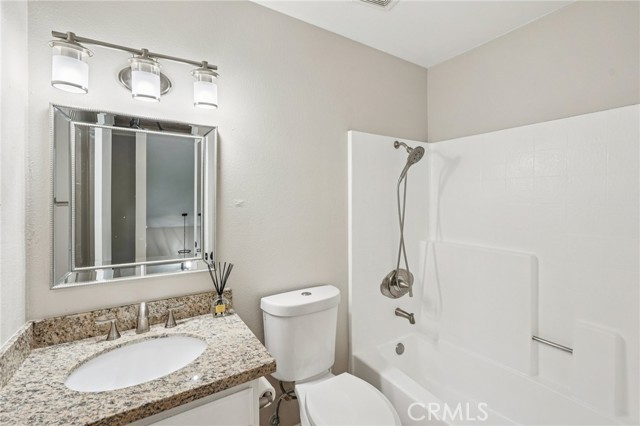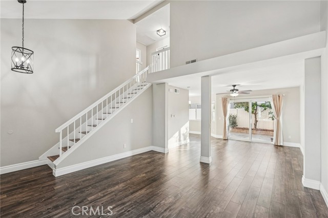 Located at the end of a cul-de-sac street this beautiful 3 bed, 2.5 bath home is ready to be made yours! Offering great curb appeal, a spacious floor plan with high ceilings, gorgeous laminate-wood flooring, a neutral paint scheme, and recessed lighting. The formal living room flows into the formal dining area or family which offers a slider to the backyard and also opens to a breakfast nook with bay windows. The updated kitchen has granite countertops, and white shaker style cabinetry, stainless steel appliances, and there is a half bathroom to complete the main floor. All 3 of the bedrooms are located on the 2nd floor, are generously sized, and have ceiling fans. The large main bedroom has vaulted ceilings and a private ensuite with a full-size walk-in shower, and an illuminated vanity. There is also a full-size hall bathroom for the secondary bedrooms to share. Enjoy the private, paved, backyard with block wall fencing – this space is ready for the new owner’s design! Conveniently located near the ideal shopping and dining hot spot; Victoria Gardens, as well as schools, the 210 and 15 Fwys. Also no HOA fees! Move right in and start making unforgettable memories in this inviting home!