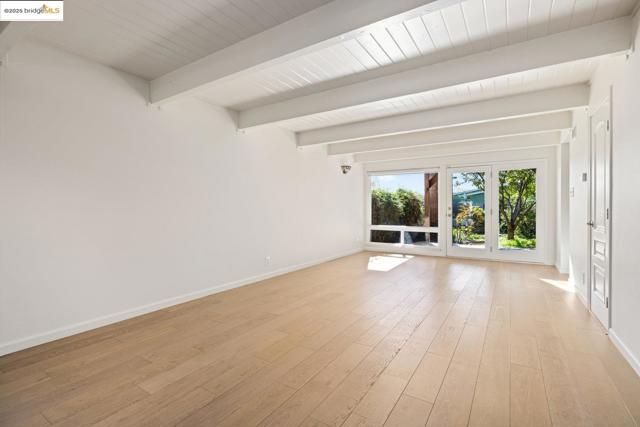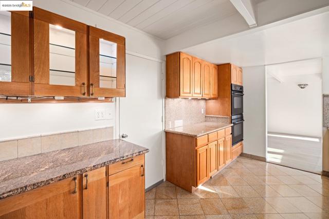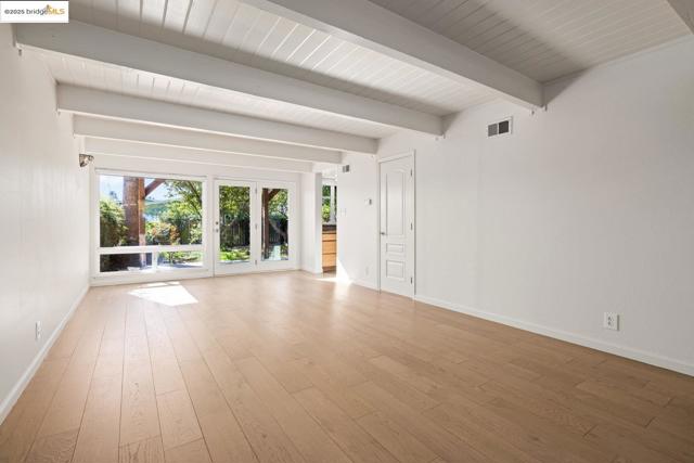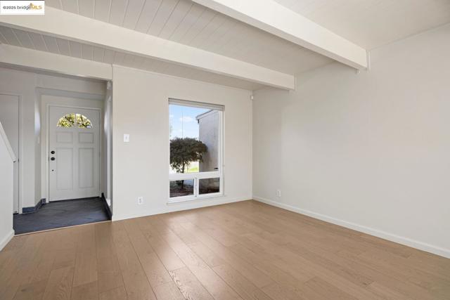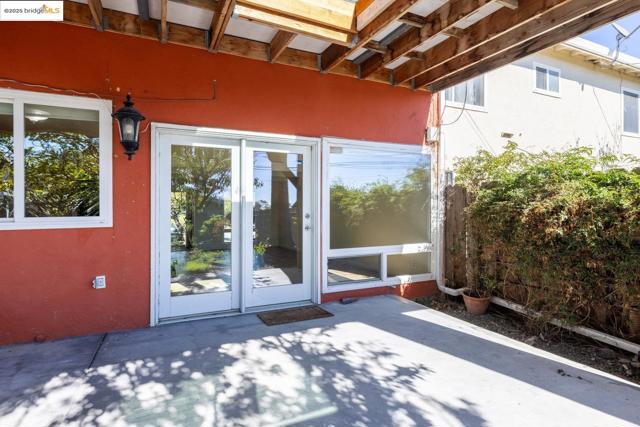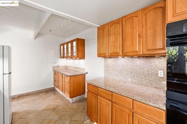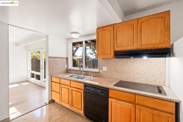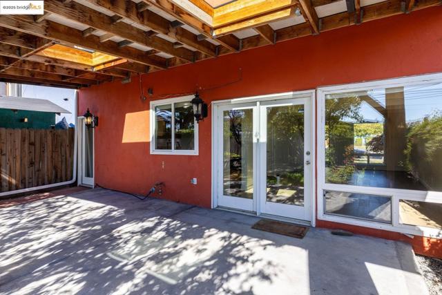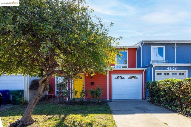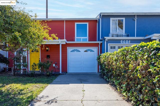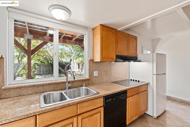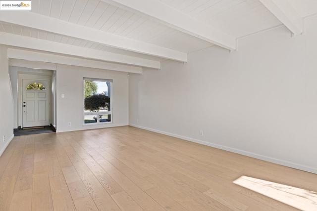 Refreshed and radiant, this mid-century 4-bedroom, 2-bath two-story home blends a sunny beachy vibe with everyday practicality. The main level features open-concept living and dining spaces with beamed ceilings, a stylish kitchen with granite counters, new electric cooktop*, double ovens, stone flooring, under-cabinet lighting, and abundant cabinetry for the home chef. Both upstairs and down, natural light flows easily through generous glass doors and windows, and light-filled rooms create a welcoming atmosphere. Just outside, with direct access from both the living area and kitchen, a private backyard oasis with a large covered patio, mature fruit trees, an iconic palm, planter box, and a meandering decomposed granite path awaits – perfect for morning coffee or weekend gatherings. Additional highlights include fresh interior paint*, newly installed wood flooring and carpeting*, and a one-car garage with interior access, storage, washer/dryer, and utility sink. Just blocks from del Norte BART, the Richmond Swim Center, and neighborhood parks, and with nearby freeway access — this Park Plaza gem is ideal for those seeking relaxed and easy urban convenience. Open Sunday 10/26 from 2-4. *Cooktop, fresh paint, carpets, installed in 10/2025 Property is virtually staged.