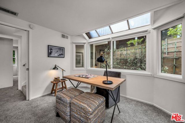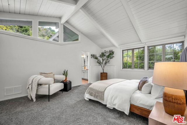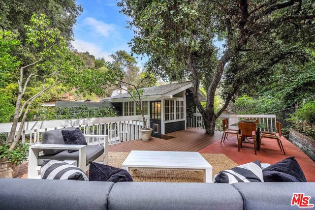 This property is located off 1 of only 3 streets on Beverly Glen Blvd. with a traffic light (on South facing hillside) providing safe & convenient entry/exit. Tucked far away from any major roads and with a cul de sac at the end of the lane, this tranquil property boasts 3 bedrooms, 2 full bathrooms and multiple outdoor living areas including an expansive back deck maximizing the natural indoor/outdoor living. Beautiful hardwood floors and vaulted natural wood beamed ceilings in living room and dining area help enhance the authentic character of this secluded residence. Kitchen has all new stainless steel appliances, high ceilings and cozy, bright built-in banquette seating area. The spacious primary bedroom has multiple closets, remodeled bathroom, abundant light, soaring ceilings and picturesque canyon view. Additional improvements include, new carpeting, new exterior and interior paint, new carport roof, new AC unit (window), landscaped yard, remodeled guest bathroom, windows, copper plumbing, tankless water heater, electrical and more. Full list provided at showing. Escape to this serene hide-away and rejuvenate. Convenient, close proximity to the Westside and Valley, just minutes from the Glen Center, at Mulholland Drive with its shopping, dining and entertainment. Minutes to Century City, Beverly Hills, UCLA, Westwood Village and Sherman Oaks. Roscomare Elementary School District.