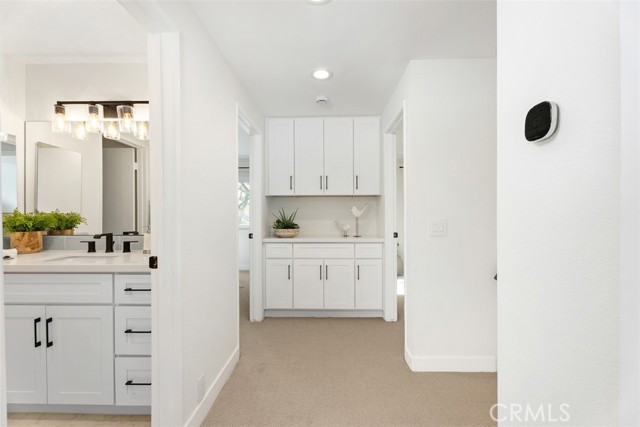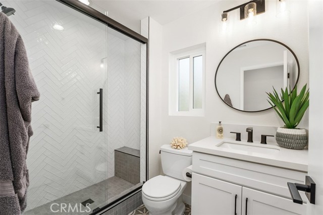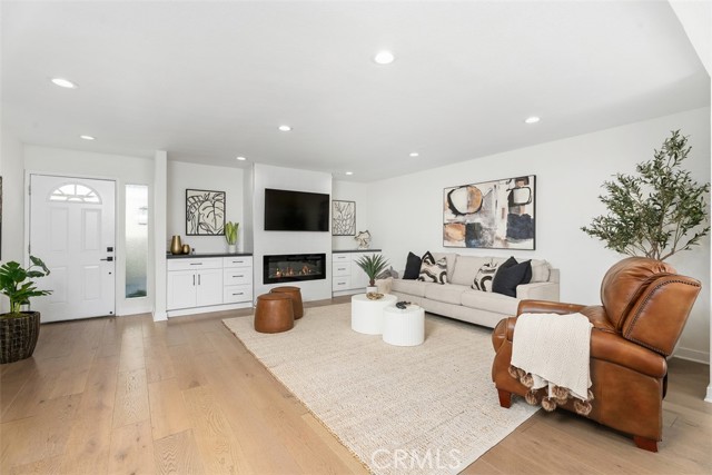 Beautifully remodeled down to the studs in 2021, this 3-bedroom, 3-bath single family attached home showcases high-end finishes from that renovation, including a quartz-topped built-in buffet with under-counter dual refrigeration, full home automation, new HVAC and ducting, new windows, recessed lighting and designer fixtures, and soft-close drawers and cabinets. Current upgrades include brand-new carpet, custom roller shades, epoxy garage floor, Noritz tankless water heater, and new built-in quartz-topped cabinetry that frames a sleek, modern tiled electric fireplace. The chef’s kitchen boasts quartz countertops, breakfast bar, premium GE Café appliances, and a walk-in pantry with an additional lighted storage area under the staircase.rnThe open, light-filled layout features beautiful hardwood flooring and flows through a 12-foot accordion glass door to a serene private backyard, perfect for indoor-outdoor entertaining. All bedrooms feature vaulted ceilings and abundant natural light. The primary suite includes a walk-in closet, dual vanities, and a large walk-in shower, while the downstairs bathroom also offers a spacious walk-in shower. Additional highlights include a gated private front patio with potential for a room addition connecting to the garage, overhead garage storage with utility sink and laundry hookups, and ADU potential within this Beachwalk community. The home is ideally located near one of the four additional satellite pools located throughout the neighborhood.rnSet on a quiet cul-de-sac with plentiful guest parking, residents enjoy the community’s Jr. Olympic-sized saltwater pool, spas, saunas, lush greenbelts, sand volleyball courts, and newly renovated clubhouses. Access includes an automated gated entrance from 17th Street as well as non-gated guest access from Goldwest Street. Just minutes from the sand, Pacific City, top-rated schools, and all the amenities of Downtown Huntington Beach, this home delivers resort-style living and modern coastal elegance.