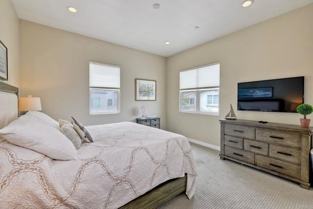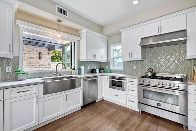 Detached Coastal Retreat — Fully Furnished Luxury Steps from the Lagoon and Beach. This stunning 4-bedroom, 3.5-bath coastal home offers 2,645 square feet of beautifully designed living space just steps from Agua Hedionda Lagoon and Carlsbad Beach. Fully furnished with every detail thoughtfully curated—from furniture and décor to bedding, linens, bikes, surfboards, and beach chairs—this property is ready for immediate occupancy. Gourmet kitchen with Bertazzoni 6-burner range and french door fridge. Accordion glass doors open to sunlit patios with an outdoor shower while the open-concept great room provides an inviting space to relax or entertain. The spa-style primary suite features a soaking tub and barn door entry, and a third-floor bonus room leads to a rooftop deck with hill, city, and peek-a-boo ocean views. Additional highlights include a tankless water heater, paid solar system, two car garage and parking for five vehicles.