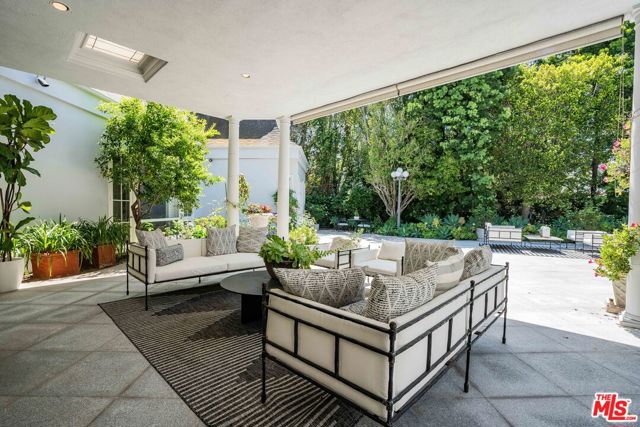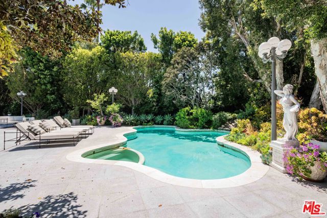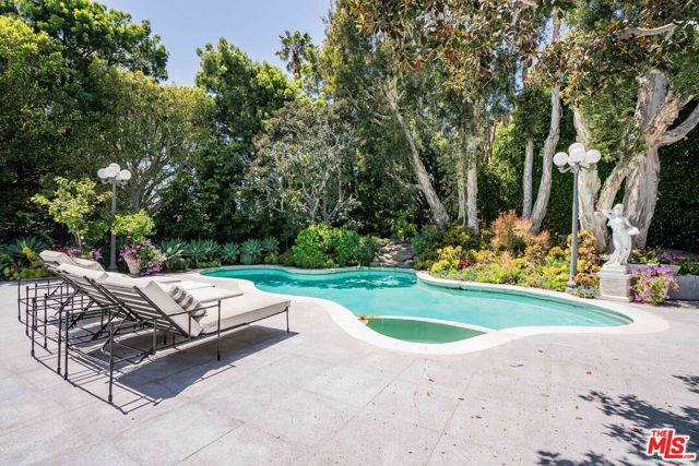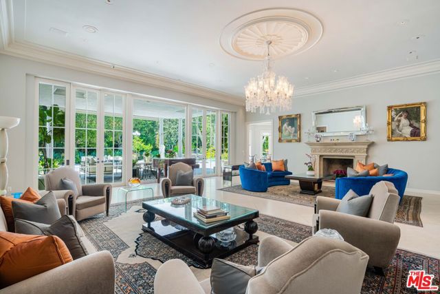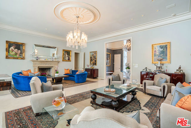 Introducing 915 Hartford Way, a timeless French Regency estate nestled behind private gates in prime Beverly Hills, just moments from the iconic Beverly Hills Hotel. This architectural gem blends elegance, sophistication, and serenity across beautifully landscaped grounds. Step through grand double doors into a dramatic two-story foyer. The formal living room showcases a stately fireplace and walls of glass framing lush surroundings. An open floor plan connects refined living spaces, including a formal dining room with soaring ceilings and tranquil views, and a charming breakfast room with direct outdoor access. The gourmet kitchen is a chef’s dream, featuring a central island, top-tier appliances, and seamless design. A cozy family room/den boasts rich wood floors, custom built-ins, a fireplace, and an adjoining office. The luxurious primary suite offers a peaceful retreat with fireplace, dual walk-in closets, and a spa-like bath with soaking tub and walk-in shower. Two additional guest suites on the main level feature custom finishes and garden views. Upstairs, find a spacious guest room with its own bath and an expansive bonus room ideal for entertainment or play. Outdoors, enjoy a resort-style oasis with lush gardens, a covered terrace, pool, fire pit, bar, and multiple dining areas and lounge spaces. Additional amenities include maid’s quarters, a wine cellar, and a 3-car garage. A rare offering of privacy, luxury, and proximity to world-class shopping, dining, and entertainment. Shown to prequalified buyers only.