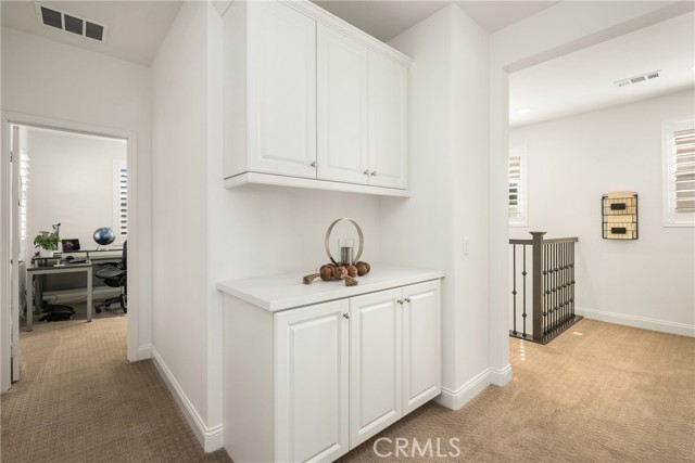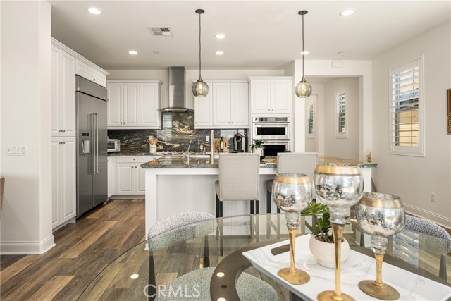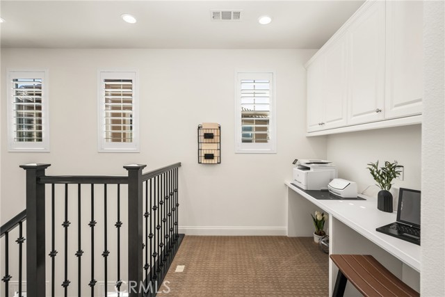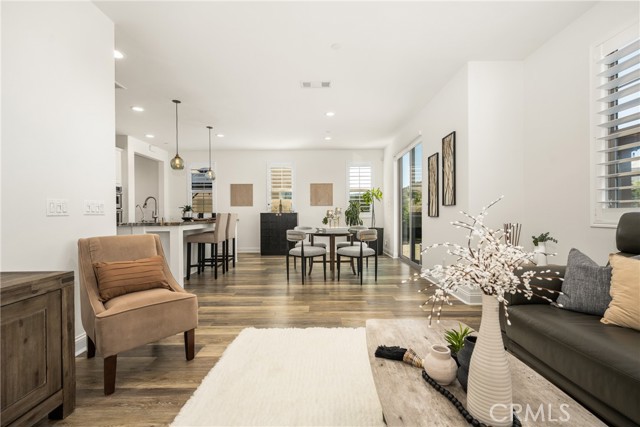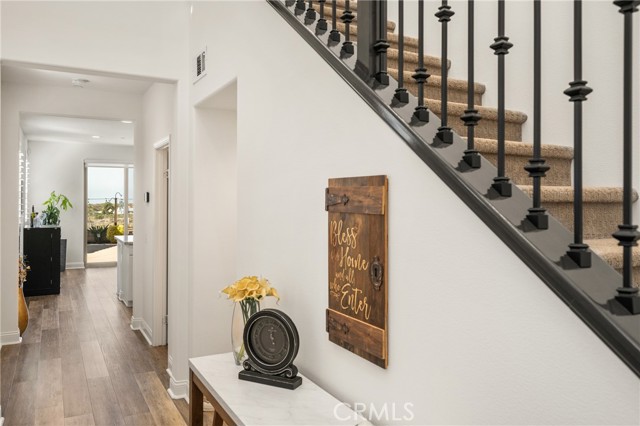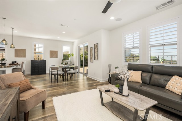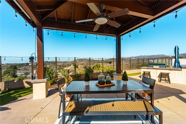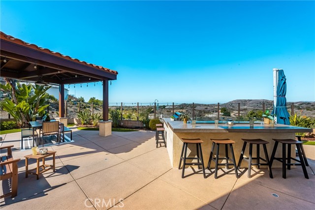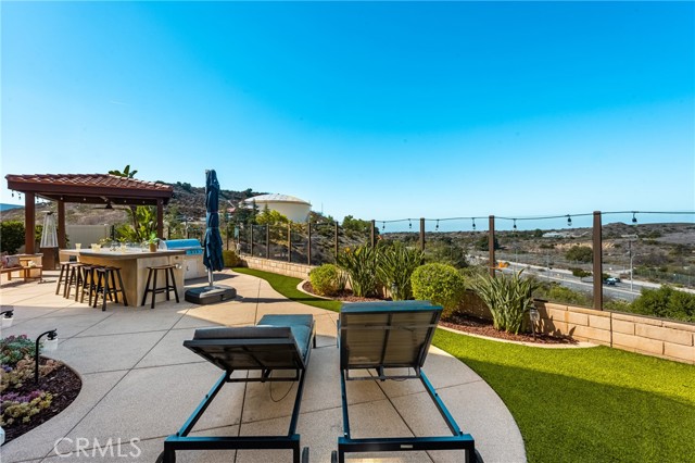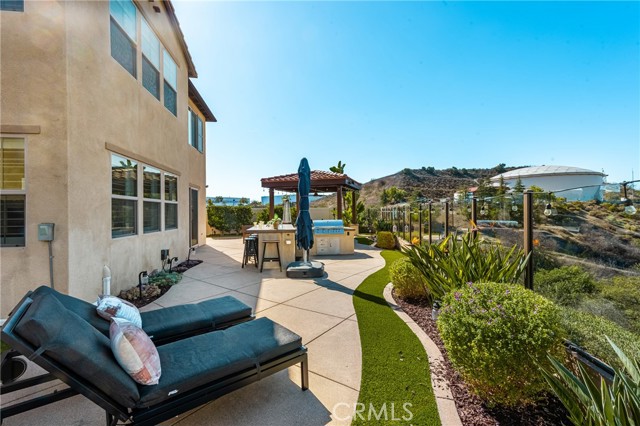 Panoramic canyon and sunset views define this modern Lake Forest residence, where contemporary design and thoughtful upgrades come together to capture the essence of California living. Every detail—from the light-filled entryway and elegant wrought-iron staircase to the open-concept layout—reflects sophisticated comfort and timeless appeal.rnrnAt the heart of the home, the chef’s kitchen showcases a full backsplash, extended island with seating, custom cabinetry, and chic pendant lights that create a warm evening ambiance. The kitchen opens seamlessly to the dining and living areas with luxury vinyl plank flooring, plantation shutters, and effortless flow to the entertainer’s backyard.rnrnStep outside to a resort-style retreat overlooking rolling hills and glowing sunsets, complete with a built-in BBQ with sink, fire table, and covered cabana surrounded by beautiful turf—perfect for relaxing mornings or lively weekend gatherings. On the side of the home, a private dog run with its own shaded gazebo adds charm and function for pet owners.rnrnUpstairs, a stylish loft with built-in cabinetry and a custom desk offers the perfect setting for a home office, reading nook, or study space. All three bedrooms are conveniently upstairs, including a serene primary suite that frames hillside views and features a spa-inspired bath with dual sinks, a soaking tub, glass-enclosed shower, and spacious walk-in closet. Additional bedrooms are bright and inviting—one currently used as a fitness office—and share a full bath with dual vanities and modern finishes. A spacious laundry room with added cabinetry completes the upper level.rnrnBlending style and efficiency, the home also features a solar energy system, tankless water heater, water softener with reverse osmosis, ceiling fans, a living room surround speaker system, and an epoxy-finished garage. Every detail has been designed for comfort and convenience, from the 32 plantation-shuttered windows to the organized closets and cabinetry throughout.rnrnIdeally located near parks, trails, and award-winning schools—and just minutes from shopping, dining, and entertainment—this Encanto view home delivers the perfect balance of luxury, security, and modern California living. Enjoy all the benefits of life inside Encanto, Lake Forest’s premier gate-guarded community with serenity, sophistication, and style.