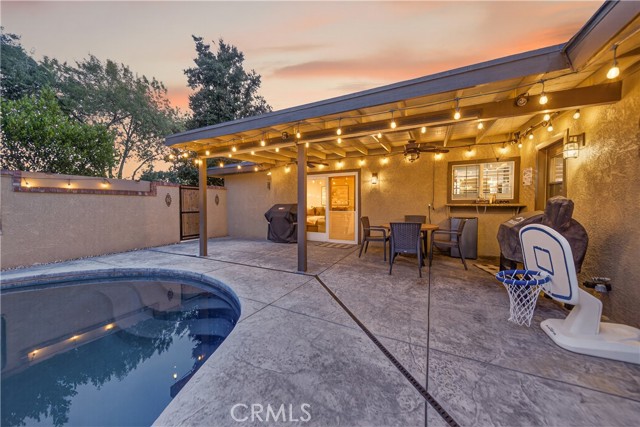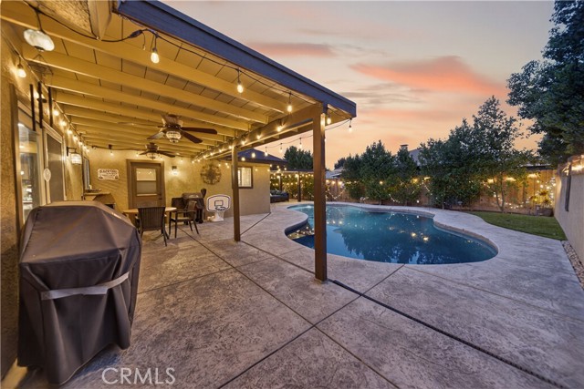 Pristine corner lot home located in the heart of Madera’s westside. Located on Mainberry’s tree lined street, this home offers a touch of modern style in an established neighborhood. You are a short walk away to Starbucks, dining, and Lions Town & Country Park. Step inside to the spacious entryway that instantly makes a statement. Right in time for the holidays, there is a front dining room and den area, ideal for entertaining and enjoyment. Feel at home with spacious living room and a new fireplace insert to stay warm during winter months. There is large tile throughout ideal for foot traffic and staying cool during warmer months. The primary suite offers spacious room with a walk-in closet, and access to the exterior under a large lifetime patio cover. Situated on the eastside of home, this will be the backyard hangout during the summer with lots of space for dining and lounging with no direct sunlight. There is a newer energy efficient pump for the stylish pool. Stamped concrete makes the low maintenance backyard a breeze to care for. Surrounded by mature bushes and greenery, you will be the envy of family and friends. With cooler and warmer seasons, enjoy the energy efficiency with a brand new solar system that includes Tesla backup batteries. For storage, you have the benefit of a three car garage for your personal use or for all your vehicles. You won’t find another home like this on the market, call your Realtor today for a private showing.