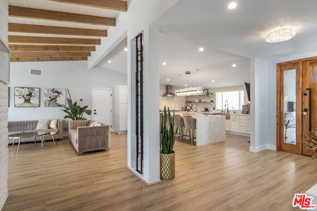 Remodeled FURNISHED Charles Du Bois in Woodland West mid century modern home on Heaven Ave! Great open floor plan with spacious living and family room divided by a double sided fireplace (decorative)! Beautiful fully equipped gourmet kitchen with 8×5 island perfect for any cook! Relaxing primary bedroom retreat with sliders that open up to massive backyard. High vaulted wood beamed ceilings! Circular driveway with EV charger! Wall of sliding doors that open up wall to wall leading to an amazing entertainers yard with lush grass area and HUGE patio! Perfect location, adjacent to Calabasas just minutes from The Calabasas Commons, Farmers Market, Starbucks, Bristol Farms, many hiking trails, easy access to Malibu State beaches! Award winning schools and much more!!! Available for short-term and up to 12 months rental, any other longer terms are negotiable. Monthly Rate includes gardener. There is a 4th bedroom (2nd Master Retreat on the opposite side of the house) that might also be available for rent at additional cost. AVAILABLE DECEMBER 2025