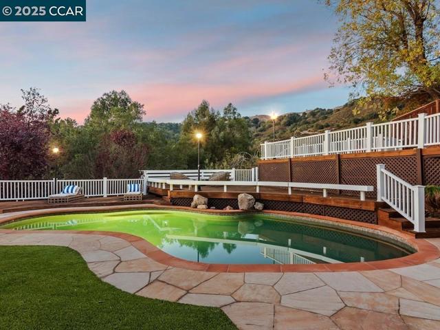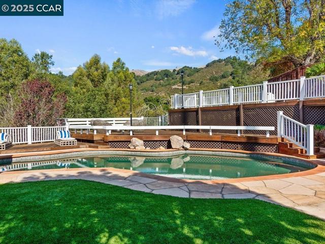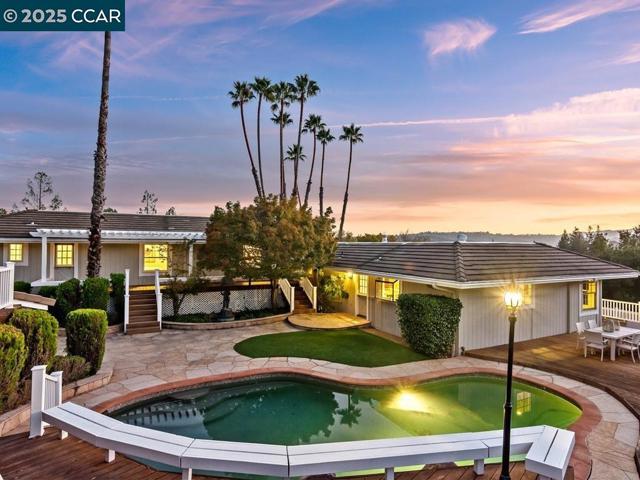 Happy Valley Glen Retreat! Epic setting in one of Lafayette’s most desirable neighborhoods, walking distance to vibrant downtown and Bart, this delightful home and property offer stunning views, gorgeous outdoor living with swimming pool and yard spaces that capture the nearly 360 degree views of the hills. With spanning windows and glass French doors in every living space, natural light and indoor outdoor living are showcased throughout. Gated entrance, beautiful stone work, 3 car garage, quality details and finish work. Thoughtful design of the home shows architectural integrity. It is private, peaceful & in harmony with nature – fabulous for both entertaining and California day-to-day living. Large center-isle kitchen features rich cabinetry, leathered granite, high end stainless appliances plus a full bar. Primary retreat with fireplace, walk-in closet, spa-like bath. The grounds include wrap around decks and flagstone patios, faux lawns and a beautiful swimming pool. Conveniently close to vibrant downtown with access to Highway 24 and Bart, the location is ideal. The Happy Valley Glen neighborhood has a special community feel. The highly acclaimed Lafayette schools are among the best in the State. Happy Valley Elementary, Stanley Middle and Acalanes High School.