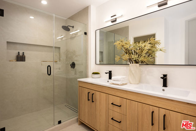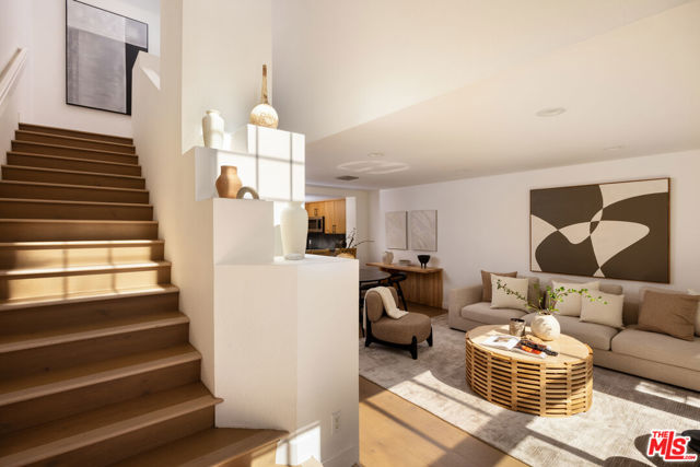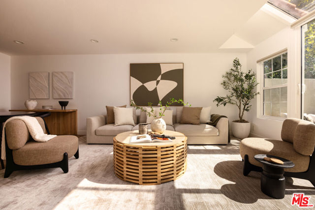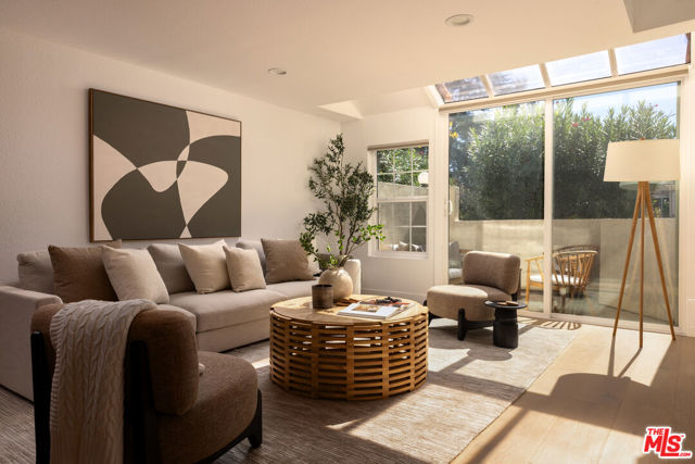 A warm modern townhome offering privacy, natural light, and refined design in a gated Calabasas community. This beautifully renovated 2 bedroom residence balances clean lines, warm finishes, and indoor outdoor living throughout. The main level features an airy living room with a large skylight style glass roof panel that fills the space with sunlight. A contemporary fireplace and sliding door lead to a private patio surrounded by mature greenery. The dining area opens to a newly updated kitchen with natural wood cabinetry, quartz counters with a soft stone finish, matte black hardware, and stainless steel appliances. A dedicated laundry room with new LG washer and dryer, a designer powder room, and direct access to the 2 car garage provide desirable convenience. Upstairs, both bedrooms feel like private retreats. The primary suite offers vaulted ceilings, a fully custom walk-in closet, and a spa-like bathroom with an oversized glass shower, double vanity, and sleek black fixtures. The secondary bedroom includes extensive built in wardrobe cabinetry and access to a second updated bathroom. Residents enjoy resort style amenities including two pools, spa, clubhouse, gym, and playground, all surrounded by lush landscaping and peaceful walking paths. Minutes to The Summit at Calabasas, Erewhon, restaurants, and freeway access.