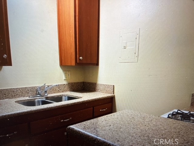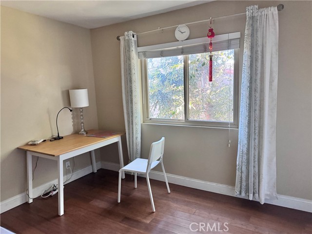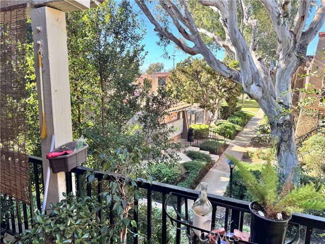 Beautifully remodeled one bedroom with air conditioning, conveniently located in a gated community near the 5 Fwy. Vaulted ceilings with architectural detail, newer dual pane windows, an invisible retractable screen, and a new bathtub. Peaceful top floor location with large patio and tranquil view of mature trees near the laundry room, pool, spa, and assigned carport space. The kitchen has been remodeled with beautiful cabinetry, siltstone countertops, stainless steel sink, and neutral tile floor throughout, except the bedroom which has a new laminate wood floor with a huge closet. Rent pays for trash, water, and gas. The tenant only pays for electricity.