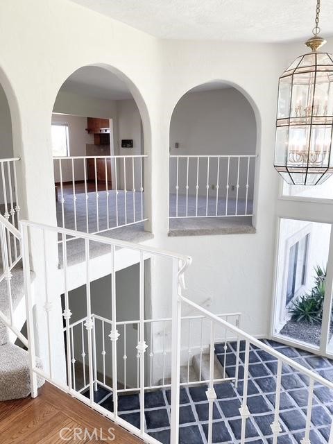 : Built-in Features, Crown Molding, High Ceilings, Open Floorplan, Recessed Lighting, Balcony, Granite Counters, Beamed Ceilings, Storage, Unfurnished, 2 Staircases