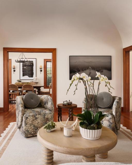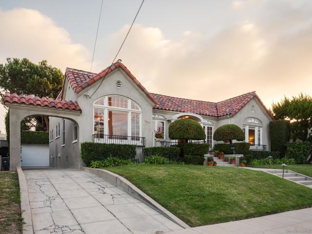 South Mission Hills Spanish Beauty! Single-level architectural gem featuring a dramatic entry, welcoming front porch, gracious living room, formal dining room, den/library, breakfast nook, and laundry room with a new Bosch washer and dryer. Abundant natural light fills the home, especially in the breakfast nook and sunroom, which glow beautifully in the morning. Ten-foot barrel ceilings and rich gumwood trim add warmth, craftsmanship, and historic character, complemented by hardwood floors and a Batchelder tile fireplace. Thoughtful 2011 remodeling respected the home’s heritage while adding tasteful modern updates for comfortable everyday living. Optional 3rd bedroom works great as a home office, library or crafts room. Enjoy seamless indoor-outdoor flow with French doors opening to a spacious private backyard surrounded by mature trees and tall hedges, perfect for lounging, dining, or play. The detached, finished garage offers excellent flex space. Evening curb appeal shines with architectural lighting that highlights the home’s Spanish Revival charm. Ideally situated on a wide, quiet street with minimal traffic and easy parking. Walk to neighborhood favorites like La Puerta, Starlite, Fort Oak, Communion, Heartwork Coffee, and Lazy Acres. Enjoy a strong sense of community with local parades, concerts, and festive celebrations. Centrally located with quick access to Mission Hills, Hillcrest, Old Town, downtown, the airport, and Balboa Park.
