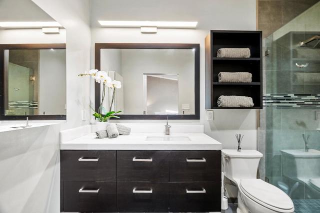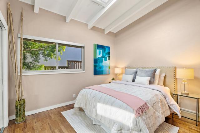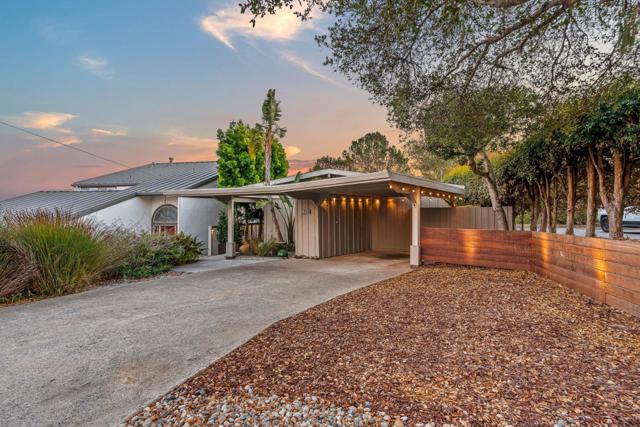 This mid-century modern home is an entertainer’s paradise. Emanating Hollywood Hills vibes, the property looks out over the canyon, with peeks of the Bay. Even before you enter the home, the moody covered walkway draws you into an immersive experience – something different and welcomed. Private, and designed as a sanctuary for both homebodies and social butterflies, alike, you won’t find another like it in the wild. The chef’s kitchen opens to both the living area and view deck, where you’ll find an automatic sunshade, a built-in heat register, and Brazilian hardwood, all thoughtfully placed with the user’s experience in mind. Offering 3 beds, an ensuite primary, and 2 full, remodeled baths, the bedroom area separates well from the communal. There is a full-size laundry room, streamlined and versatile, as well as a very usable bonus area and workshop, below the house, neither of which are counted in the square footage. There is also a second, lower level deck, and a separate patio area, offering many choices of private outdoor spaces, from which to enjoy this incredible Monterey haven.