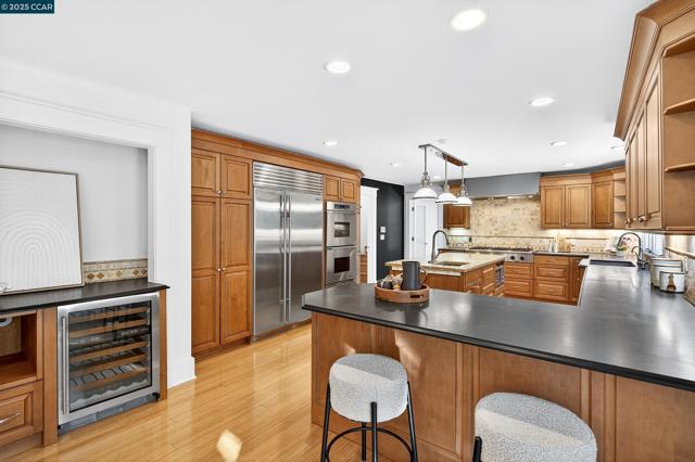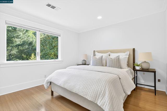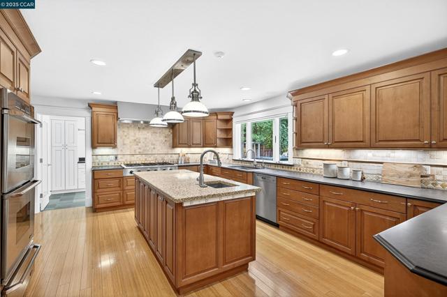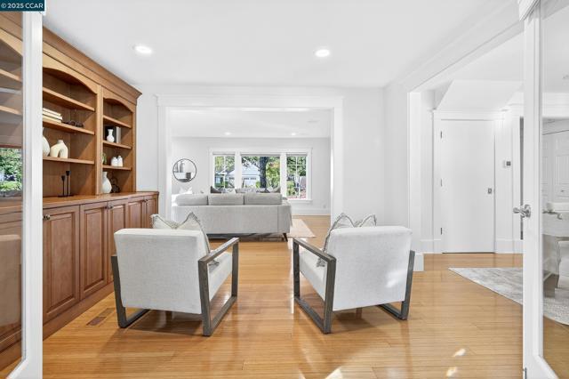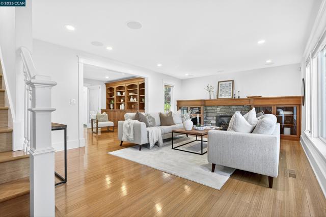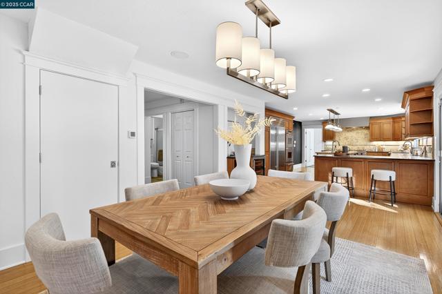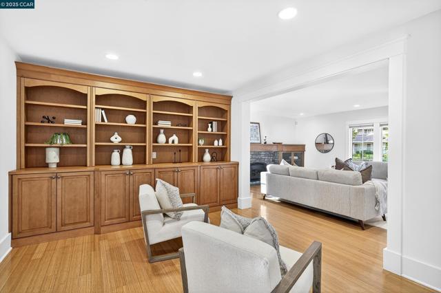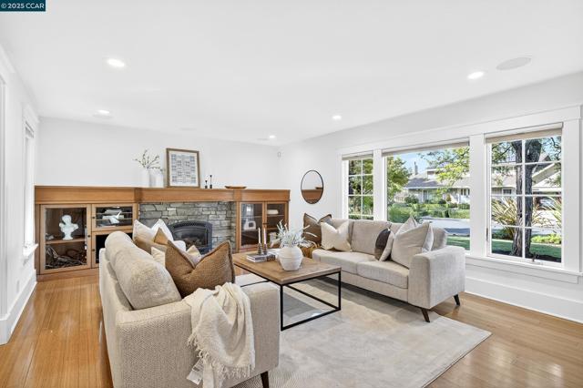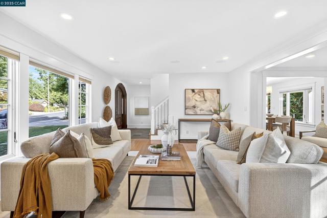 Open Saturday Nov 1 and Sunday Nov. 2 from 1 to 4pm. Come see sophisticated new look! This elegantly remodeled home sits on one of the area’s most sought-after streets, blending timeless charm with sophisticated, high-end finishes throughout. The private, fully landscaped creekside lot offers a serene setting with an outdoor kitchen, lush lawn, and a spacious deck—perfect for entertaining or quiet relaxation. MAIN LEVEL: Sun-filled living room with a striking fireplace; inviting reading room/library or office; open dining and kitchen area with professional-grade appliances, custom cabinetry, and a stunning Terrazzo island countertop; large laundry room with abundant storage; plus a bedroom and full bathroom. UPPER LEVEL: Luxurious primary suite with a private balcony and generous closets; spa-inspired primary bathroom; two additional spacious bedrooms; and a full bathroom. GUEST SUITE: Complete with a bedroom, cozy study nook, and full bathroom—ideal for visitors or extended stays. GREAT LOCATION: Safe, flat, wide streets that are bikeable and walkable to excellent K-8 schools. Owned Solar system with Electric car charging. Optional rare transferrable full golf membership to Moraga Country Club – No transfer fee – $898/month