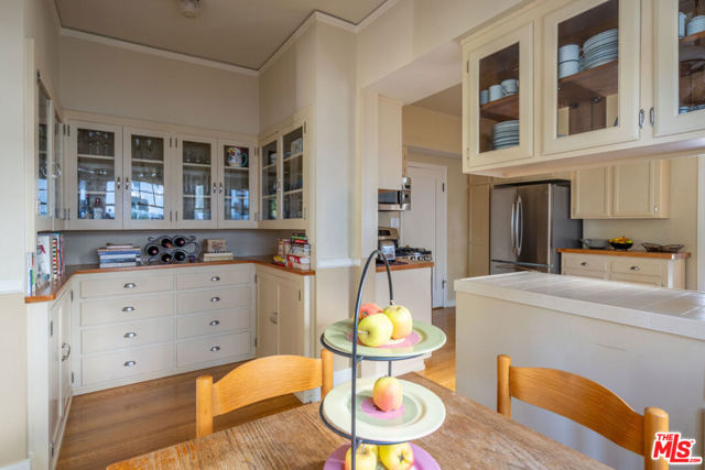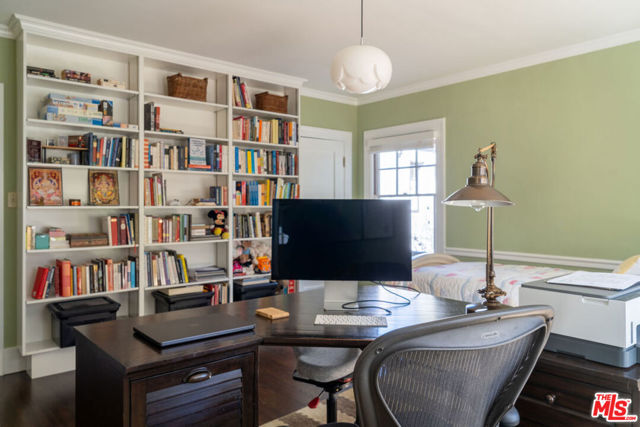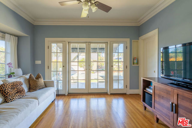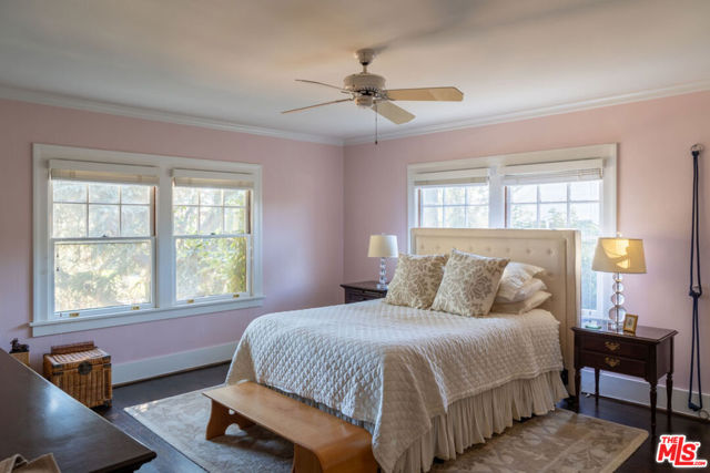 Character abounds in this lovely Windsor Square Country English with a classic center hall floor plan. The spacious living room boasts a fireplace and leaded windows. An adjacent cozy family room with French doors leads to a charming, covered patio. The formal dining room with leaded windows is accessed by pocket doors off the entry. The bright and airy kitchen is equipped with newer appliances, a butler’s pantry and an inviting breakfast nook. Also, downstairs there is 1 bedroom and 1.5 baths. Upstairs is a landing with built-in bookcases, 4 bedrooms and 2 updated baths. Hardwood floors throughout. Guest house above garage with kitchen and bath. Generous backyard with a pickle ball court and raised beds for your vegetable and herb garden. Plus, a drought tolerant front yard and EV charger. Enjoy Robert Burns Park and Larchmont Village’s farmers markets, cafes, shops and yoga studio just a few tree lined streets away.