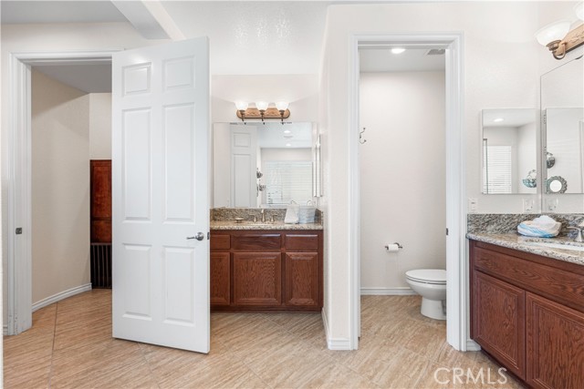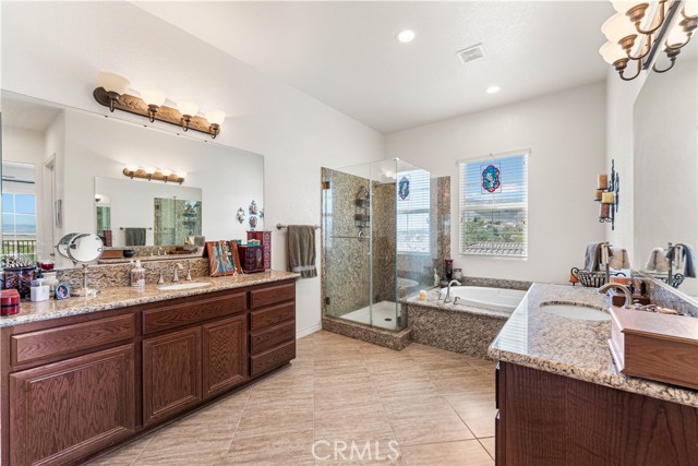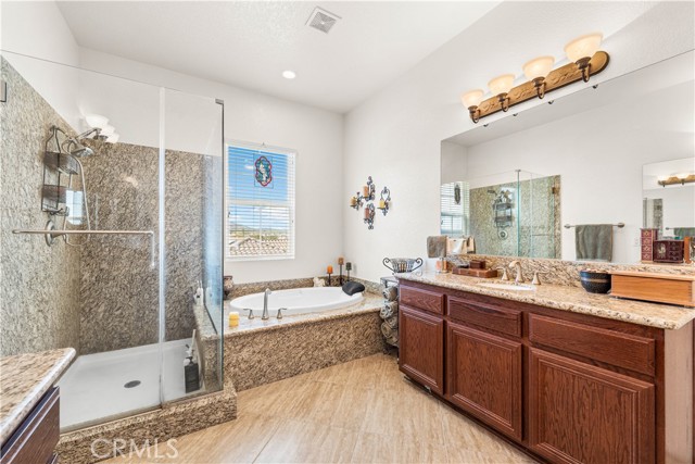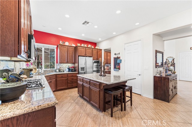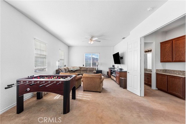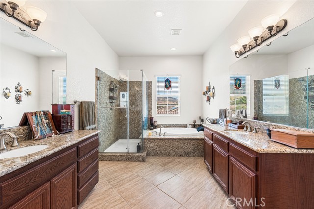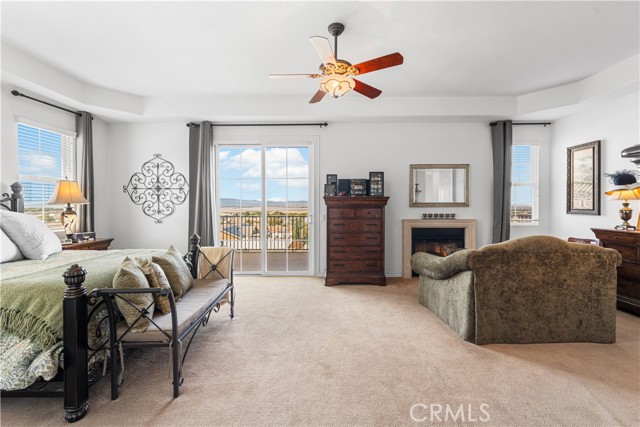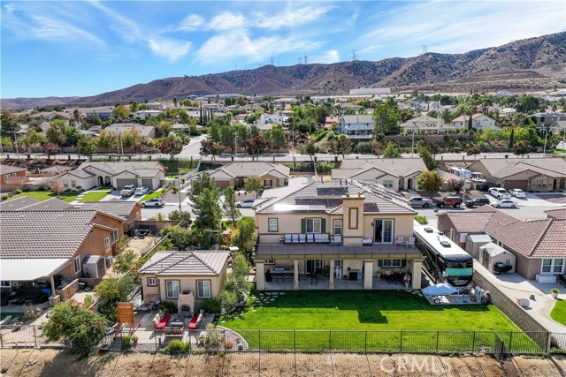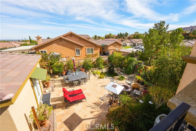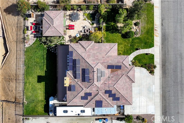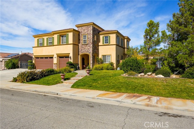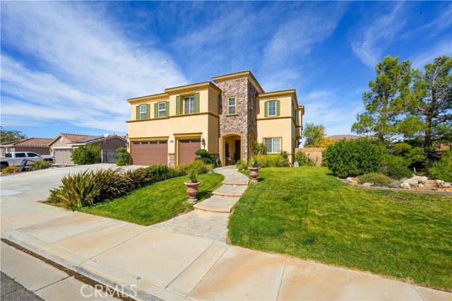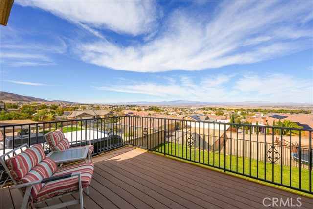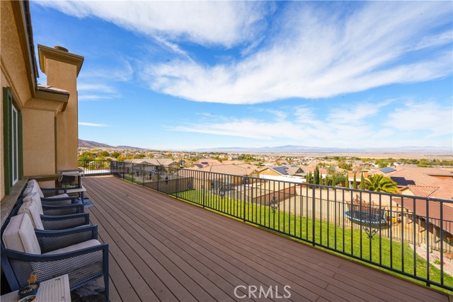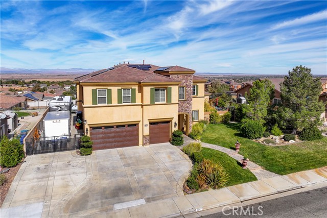 This one-of-a-kind former model home, offered by the original owner, sits in one of the Antelope Valley’s most desirable neighborhoods and is zoned for Quartz Hill High. Featuring 3,909 sq. ft. plus a 350 sq. ft. ADU, this home offers flexibility for multi-generational living or an income opportunity. Highlights include a butler’s pantry, formal living and dining rooms with soaring 25+ ft ceilings, and a secondary master suite downstairs with a full bath and walk-in closet. Upstairs, the primary suite opens to a walkout patio capturing stunning 300-degree views of the valley, Tehachapi range, and beyond. Enjoy a spacious game room with bar and library, a full outdoor kitchen, fireplace, fire ring, koi pond, and three large seating areas—perfect for entertaining. Energy-efficient with 5,500W of paid solar, dual tankless water heaters, two 5-ton A/C units, and 2×6 exterior walls. True RV access, block walls, and room for a pool complete this exceptional home.