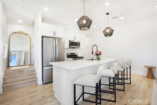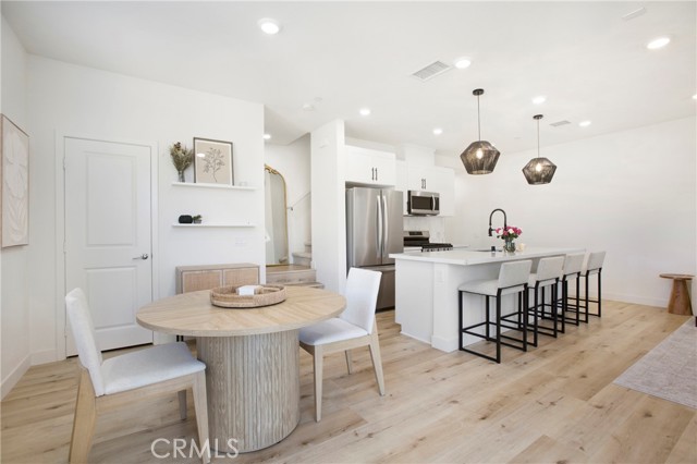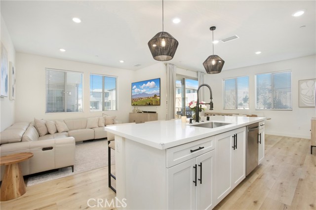 Welcome to the beautifully designed town home located in the Hudson gated community of Placentia. Newly built at the end of 2022 with an inviting open floor plan that features upgraded luxury vinyl flooring, high ceiling, recessed lighting throughout the home, dual-pane windows and sliding door that leads to the balcony, perfect for outdoor sitting, a walk-in pantry to store snacks, kitchen island with quartz countertop equipped with a single bowl sink and tiled marble back splash offering a clean aesthetic to the white shaker cabinetry matching cohesively with powder room. This turn-key home was thoughtfully built for energy efficiency featuring solar panels, a tank-less water heater, enhanced insulation. Enjoy the convenience of smart home features – garage opener, connected thermostat and smart door. Located on the third floor you’ll find all generous sized bedrooms, laundry area and a linen closet. Primary bedroom features a walk-in closet, en suite bathroom includes a step in shower with glass, tiled flooring, quartz counter top. Two-car garage, direct entry with plenty of space for storage. Community offers, BBQ area, fire-pit to hang out, Playground for tot lot, Basketball Court and Dog Park. Conveniently located near shopping centers, restaurants, 91/55/57 freeways and walking distance from schools.