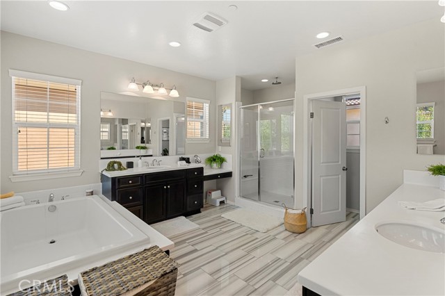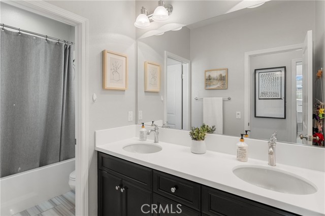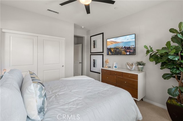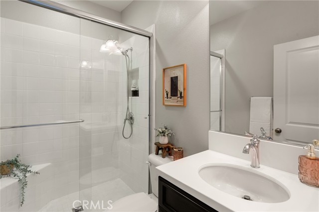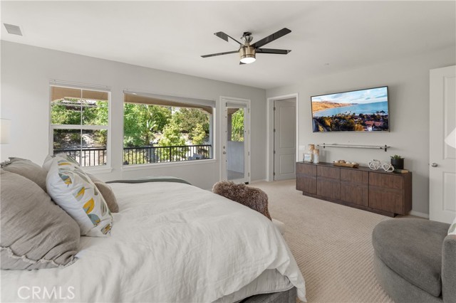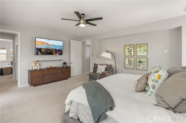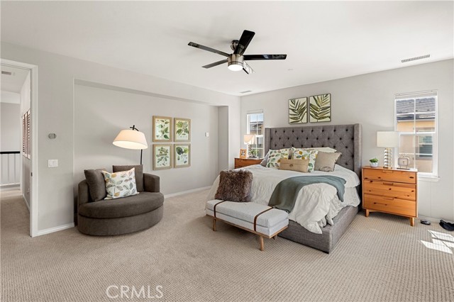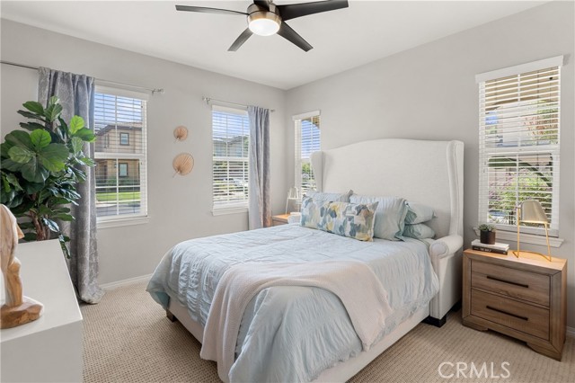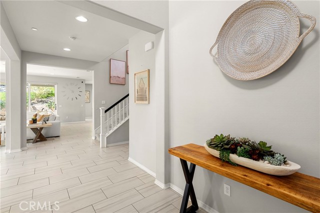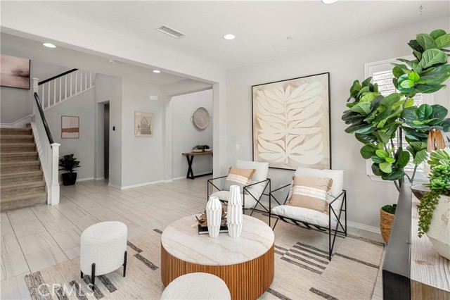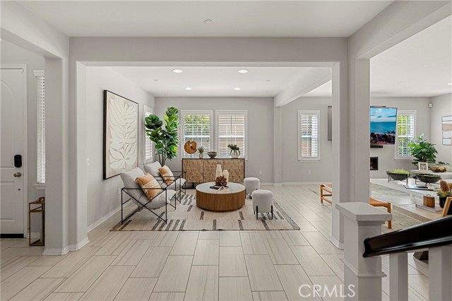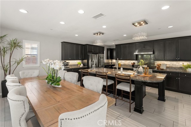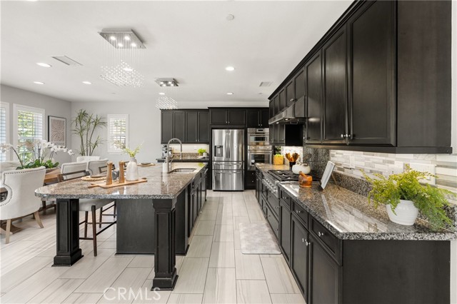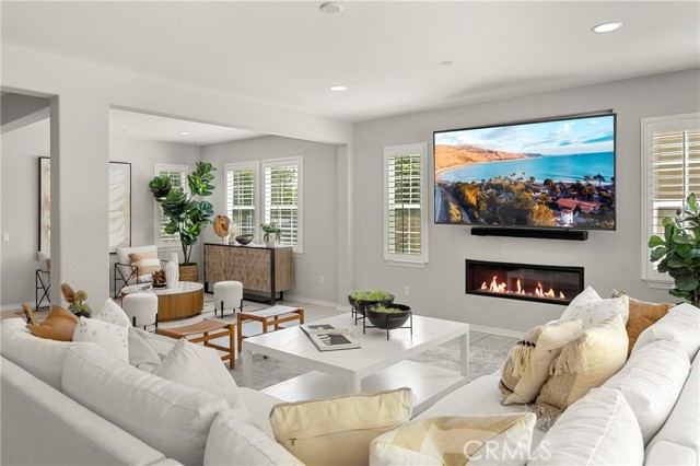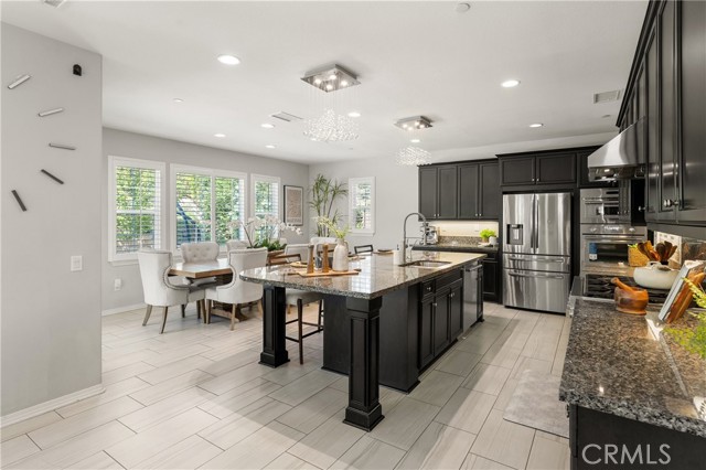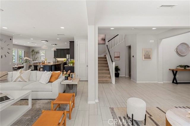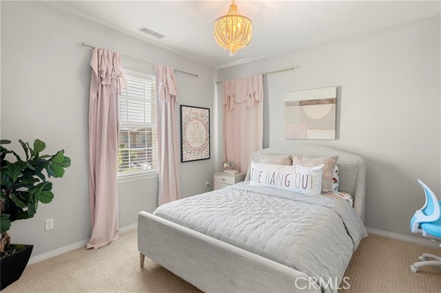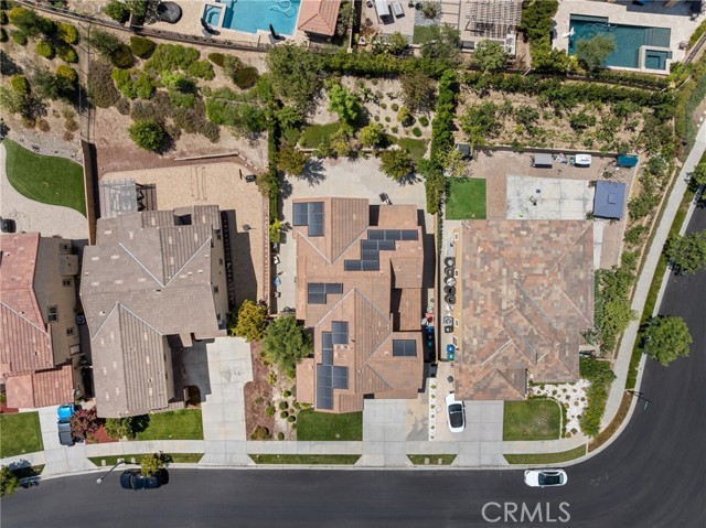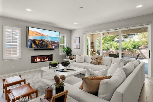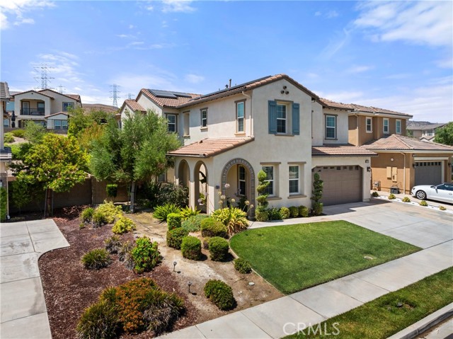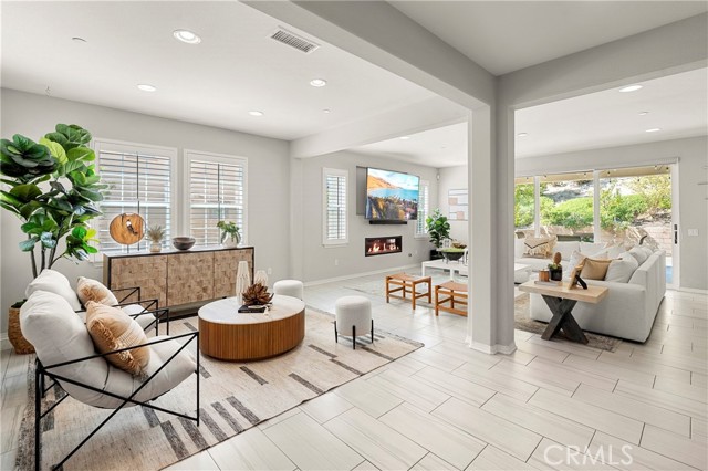 Tucked away in the coveted Serena at Vila Borba, this exceptional Plan 3 residence, built by Standard Pacific Homes, offers the pinnacle of style, comfort, and functionality. Spanning an impressive 3,100 square feet of living space, this home features 5 bedrooms and 3.5 bathrooms, making it the largest floorplan in the Serena tract. From the moment you step inside, contemporary upgrades set the tone. Custom window coverings, elegant granite countertops in the gourmet kitchen, and a sleek, low profile fireplace in the living room create an inviting atmosphere wrapped in luxury. The kitchen blends high end style with everyday function, featuring upgraded stainless steel appliances including a Thermador 36 inch Professional Series gas rangetop, a large center island with counter height seating, and a walk in pantry with an adjoining prep area. A builder upgraded three panel sliding glass door seamlessly connects the living room to the backyard, flooding the home with natural light and creating a perfect indoor-outdoor flow. The thoughtfully designed layout also includes a main floor guest suite, an attached three car garage with epoxy flooring, and a lavish primary suite featuring a custom built-in closet and a private covered balcony. Sustainable living is built in with an owned 23 panel Tesla Premium Solar System. The backyard offers a lush, fruitful escape with peach, donut peach, almond, and lemon trees. Residents of Vila Borba enjoy manicured community spaces, scenic walking paths, multiple parks, and rolling hill views. Perfectly situated for commuters, this home offers quick access to the 71, 91, and 60 freeways, plus upscale shopping and dining at the highly sought after Shoppes at Chino Hills. Luxury, convenience, and community, this home truly has it all!