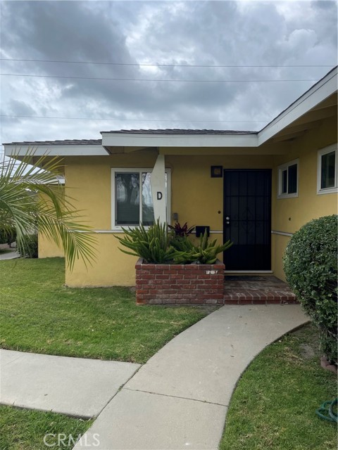 Remodeled 2-Bed, 1-Bath Single-Story Unit in a Quadruplex unit #D. Welcome to this beautifully 2-bedroom, 1-bathroom located in end unit. This charming unit features fresh paint throughout, brand-new dual-pane French doors, and newer dual-pane windows in the bedrooms and living room for energy efficiency and comfort. Enjoy the warmth of repolished oak hardwood floors and refreshed kitchen cabinets, complemented by durable tile flooring in both the kitchen and bathroom. Each room is equipped with a new ceiling fan for added comfort. Relax or entertain on the spacious private patio perfect for B.B. Q, morning coffee, or simply enjoying the outdoors. The home also includes a detached one-car garage and is conveniently located near shopping centers, restaurants, parks, major freeways, and Disneyland.