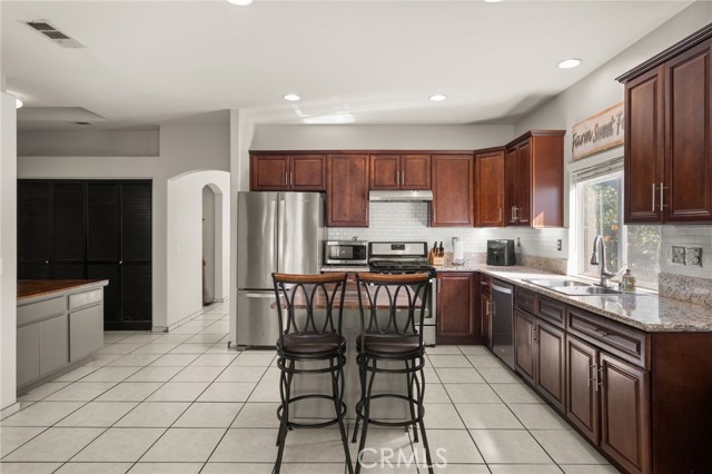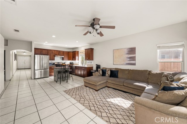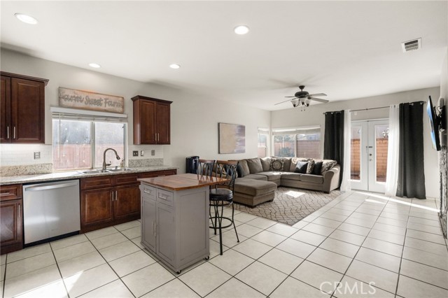 Welcome home to this beautifully maintained single-story residence tucked inside Moreno Valley’s sought-after Victoriano community. From its inviting curb appeal to its bright, open interior, this home delivers warmth, comfort, and style in every corner. Step through the double-door entry into a spacious open-concept floor plan where the living and dining areas flow seamlessly together — perfect for family gatherings and entertaining guests. Large windows and neutral tones fill the space with natural light, while tile flooring adds a clean, modern touch. The remodeled kitchen is the heart of the home, featuring rich wood cabinetry, granite countertops, stainless-steel appliances, and a movable center island. Overlooking the cozy family room, this space invites connection and relaxation. The family room showcases a beautiful stacked-stone fireplace, custom built-in shelving, and French doors that open to the backyard — creating the ideal indoor-outdoor experience. Your primary suite offers a peaceful retreat with warm wood-style flooring, ample space for a sitting area, and a private ensuite complete with a soaking tub, separate shower, and dual-sink vanity. Two additional bedrooms provide flexibility for guests, a home office, or growing family needs. Outside, enjoy a low-maintenance yard with mature trees offering shade and charm, while the three-car garage provides plenty of parking and storage. Located near top-rated schools, parks, shopping, and easy freeway access, this move-in-ready home perfectly blends convenience with everyday comfort. This one will go fast so SCHEDULE YOUR SHOWING TODAY!