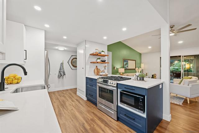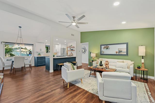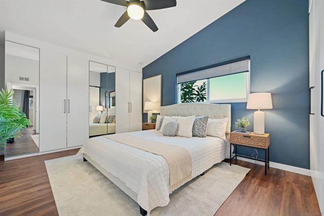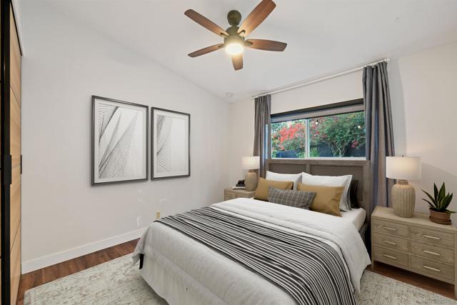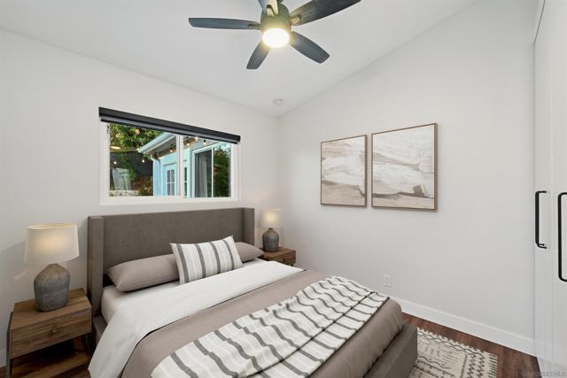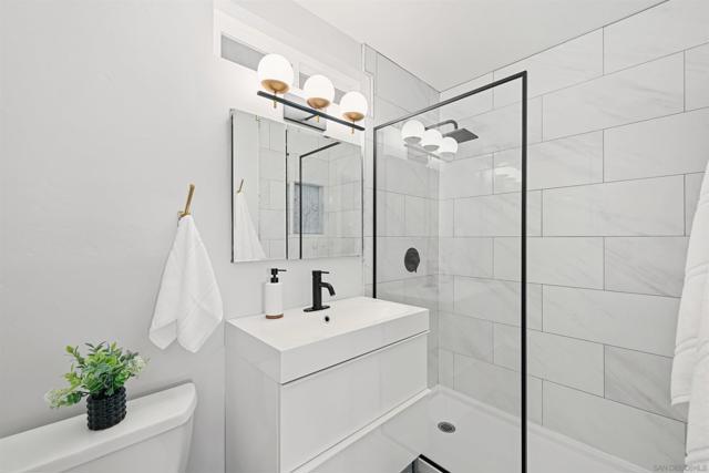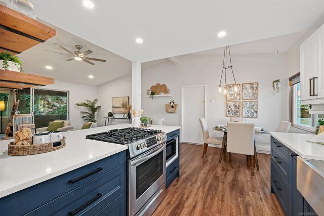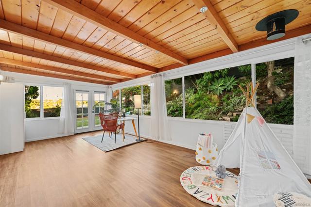 Discover this beautifully remodeled single-family home in the vibrant heart of central San Diego. This inviting 3-bedroom, 2-bath residence perfectly blends modern design with everyday comfort, offering a bright, open floor plan enhanced by vaulted ceilings, large windows, and fresh neutral tones. Stylish laminate flooring flows throughout, complementing the upgraded kitchen, which features crisp white cabinetry, quartz countertops, a decorative tile backsplash, a stainless steel apron sink, and a gas range ideal for the home chef. Both bathrooms have been tastefully remodeled with modern finishes, while custom bedroom closets add a touch of functional luxury. A spacious, enclosed sunroom with open-beam shiplap ceilings expands the living area, making it perfect for an office, playroom, or creative retreat. Additional upgrades include new windows, new water heater, fresh interior and exterior paint, and low-maintenance turf with fully landscaped grounds. The attached 2-car garage provides added convenience and storage. The backyard is a private oasis with a variety of fruit trees, multiple patios for outdoor entertaining, and terraced garden areas with steps leading to southwest-facing views of the surrounding hills. Ideally located near Talmadge, Kensington, and City Heights, this move-in-ready gem offers quick access to North Park dining, Balboa Park, downtown San Diego, beaches, shopping, and major freeways, making it the perfect blend of comfort, style, and convenience in one of San Diego’s most central neighborhoods.