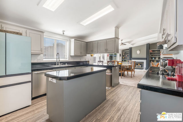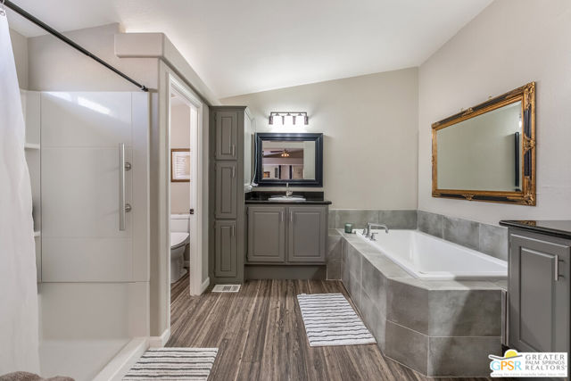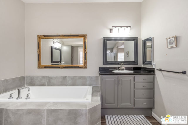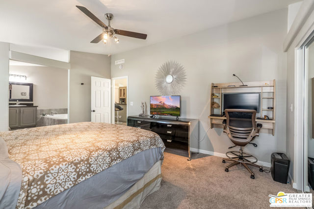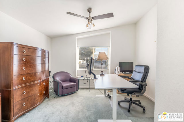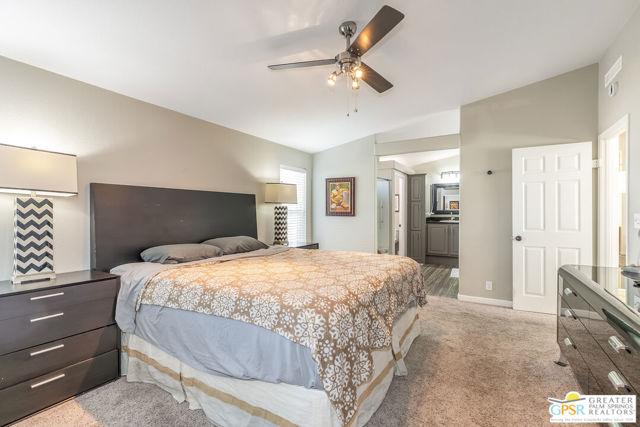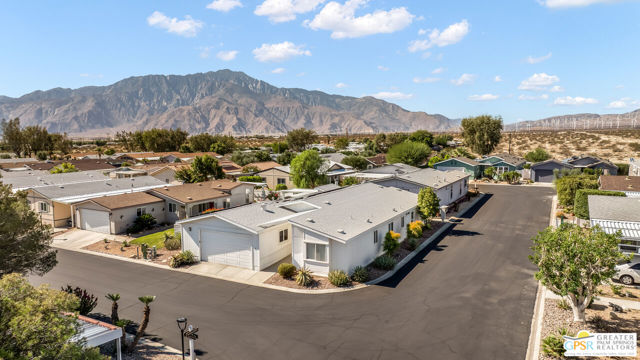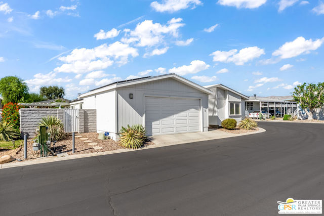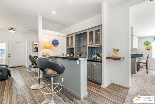 What’s behind the chartreuse door? This home is an entertainers paradise with an open-concept layout spanning nearly 2,200 square feet. In the kitchen you will find stainless steel appliances and endless counter space that flows into the expansive living and dining room with vaulted ceilings in a home flooded with natural light. You will find no shortage of areas to relax, entertain, or even enjoy your private bar when guests are over. The oversized master suite is your sanctuary to rejuvenate, with plenty of distance from the guest rooms for added privacy. Outside you have a private, walled-off yard with your own private pool and spa. Making all this even better is the fact you have 35 solar panels helping to utilize our abundant desert sunshine and keep your monthly electrical payments at a minimum. You also have an attached two-car garage with laundry inside, and the HVAC system is only 2 years old. The home is on a permanent foundation with a 433a certificate, so it qualifies for conventional lending options. And when you thought it couldn’t get any better, this incredible home is located in the guard-gated community of Vista Montana. A friendly, social community for those ages 55 and better. The community has a clubhouse with onsite property management, resort-style pools and spas, a billiard room, card room, sauna, fitness room, a designated dog area, and plenty of beautiful greenery to enjoy on your morning walks. This is the home you’ve been waiting for. Schedule a tour today, and come see your new desert paradise!
