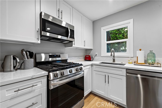 Wonderful North Laguna fully furnished studio apartment just a block from Heisler Park and Picnic Beach! This completely updated studio apartment has great light with big windows and plantation shutters, new laminate flooring throughout, LED recessed lighting and new ceiling fan, good closet space with mirrored closet doors, front loading washer and dryer, gorgeous bathroom with carrara style quartz vanity, tiled shower, dual shower heads, and seamless glass shower door, separate kitchen is fully upgraded with stylish white shaker cabinets, quartz counter tops, all new stainless steel appliances including refrigerator, dishwasher, gas range, and microwave, coffee bar, pantry cabinets, and large private back patio off the kitchen, plus parking for one small car, motorcycle, golf cart or maybe just a bike (which isn’t really needed in this great location) off of back alley. Quick stroll down to Urth Caffe or locals favorite beach Diver’s Cove or walk to any of the other downtown shops and restaurants Laguna Beach has to offer! All utilities including WiFi are included in the rent.
