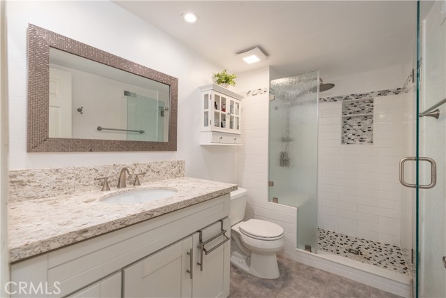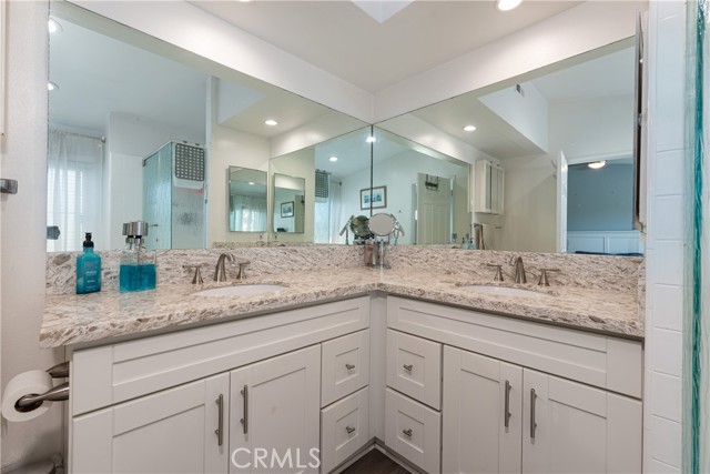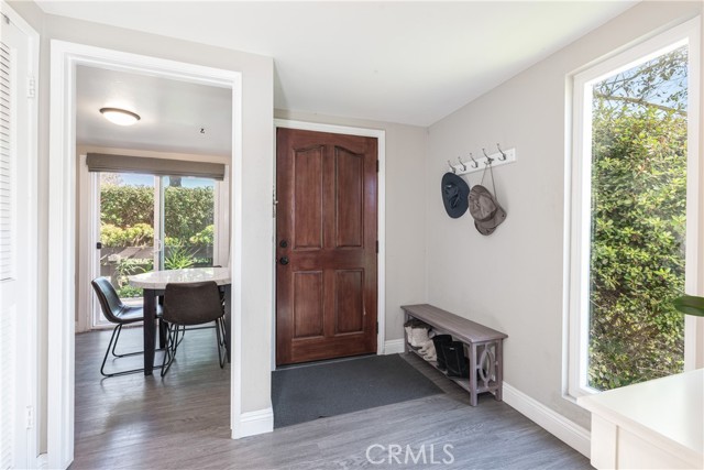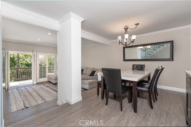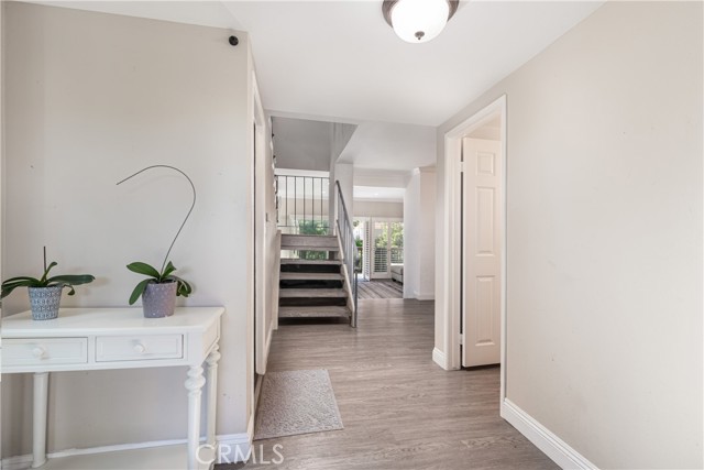 Discover this elegantly updated, light-filled end-unit townhome, perfectly situated on a quiet cul-de-sac within the prestigious, guard-gated community of Rolling Hills Estates, known as The Terraces. Residents of this exclusive HOA enjoy resort-style amenities, including five sparkling pools and relaxing spas, tennis courts, a playground, and a clubhouse equipped with a kitchen. The home features three spacious bedrooms and two and a half bathrooms, complemented by an oversized two-car garage, an additional two-car driveway, and convenient proximity to guest parking and an expansive park-like grassy area. Step inside to find wood laminate flooring throughout the main level, new carpeting, and freshly painted interiors. The bright living room is highlighted by a cozy fireplace and full-length French doors that open onto a wraparound balcony. The open-concept dining area adjoins a kitchen complete with granite countertops, elegant wood cabinetry, an electric cooktop, a wall-mounted double oven, and abundant storage. The breakfast nook, bathed in morning light, opens via a sliding door to a welcoming front patio. Upstairs, plush carpeting leads to the spacious master bedroom, featuring vaulted ceilings, two walk-in closets, and a remodeled en-suite bathroom with a soaking tub, separate shower, and dual-sink vanity. The guest bedrooms share a full hallway bathroom and access to a shared balcony. Enjoy the convenience of being within walking distance to shops, parks, and Ridgecrest Intermediate School, making this townhome a perfect blend of comfort, luxury, and location.