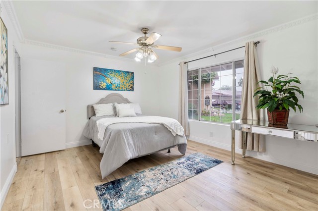 Beautiful sparkling pool home with a big back yard. Single story home with 4 bedrooms, bonus room, 2 baths, 2-attached garage in cul-de- sac location. Light and bright living room with a cozy fireplace and tile floor. Spacious kitchen with white kitchen cabinets, newer quartz counter top, kitchen faucet,rnone big stainless sink and newer garbage disposal. Kitchen has a breakfast bar that you can use as a more space. New waterproof vinyl floor in all bedrooms & bonus room. Tile floor in living room, kitchen, hallways and bathrooms. Bonus room with brand newer ceiling fan. Master bedroom with walk-in closet and walk in master bathroom. Granite counter top in all bathrooms. Newer 13 recessed lights, switches and plugs. Two newer hose bibs and outside faucets in outside sink. Sparkling pool in the big back yard with newer Pentair Superflo Variable speed & Energy efficient pool equipment. This home is good for entertaining family & friends. Lots of fruit trees (MANGO & GRAPE FRUIT ARE IN THE FRONT & DRAGON,PAPAYA,LIME & ORANGE ARE IN THE BACK YARD). Extra wide drive way. Great location in quiet cul-de-sac, easy freeway access, 8 mins to Knotts Berry Farm, 15 mins to Disneyland.