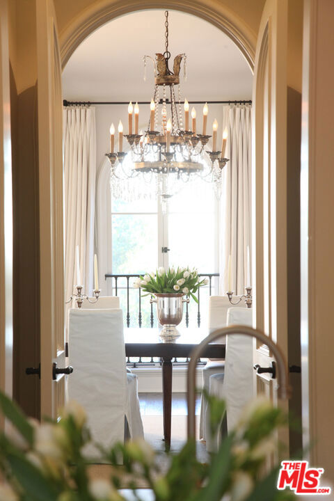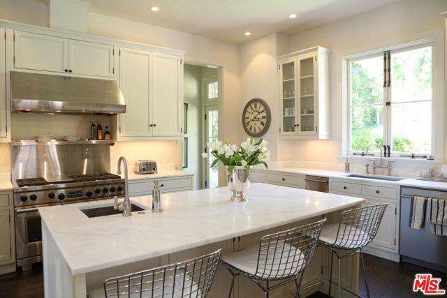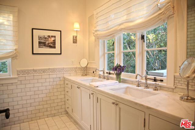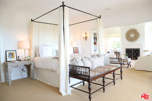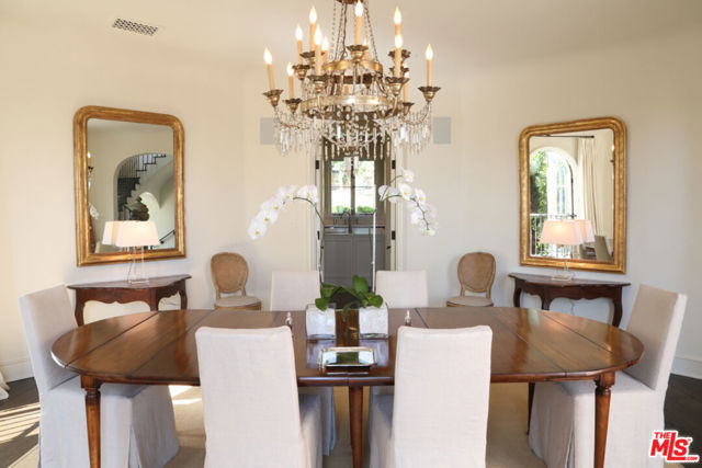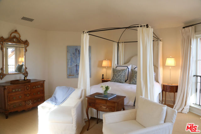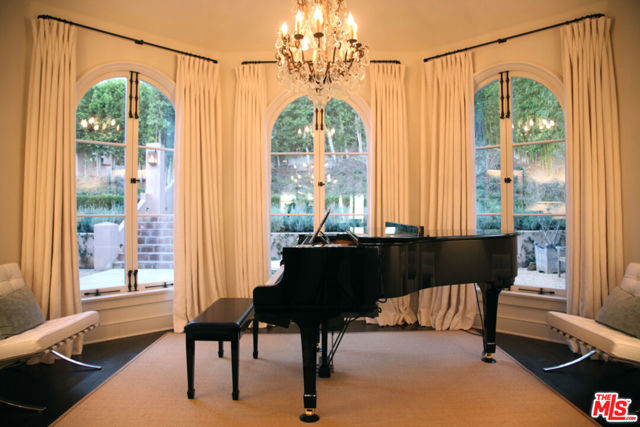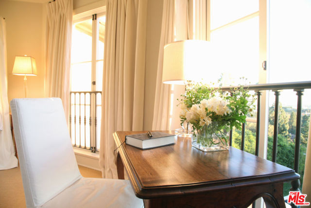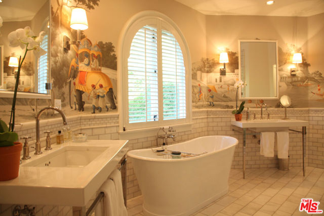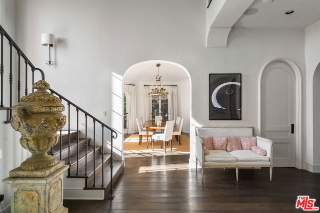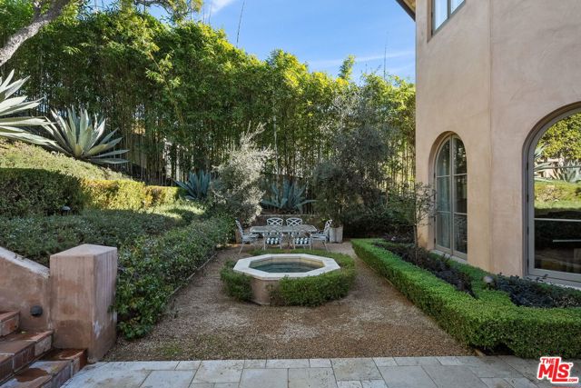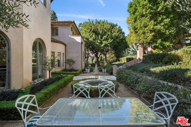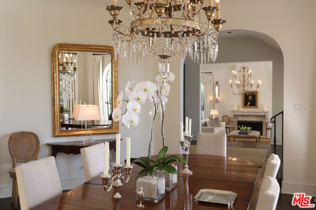 Capturing spectacular city views from nearly every vantage point, this gated Spanish Colonial estate offers unparalleled privacy and elegance in the Hollywood Hills. The luxurious 4 bed, 6 bath Main house and 1 bed 1 bath Guest House property comes fully furnished across three levels, seamlessly integrating classic Spanish Revivalist style with modern functionality. The main level features a chefs kitchen complete with Carrera marble countertops and center island, dual dishwashers, SubZero refrigerator and Wolf range. A spectacular living area blends sophistication and style with a limestone fireplace and expansive windows, filling the space with natural light. Music enthusiasts will love the custom soundproofed studio and vintage console. Upstairs await two generous secondary bedrooms and the impressive primary suite and adjacent sitting area that gazes out to city lights from a private deck and fireplace. Retreat to the lower level to exercise in the fitness room, and unwind in the sauna, wine cellar, study and media room. Attached 1 bedroom guest quarters provide visitors with a space to call their own. All embraced with magnificent amenities outside, including a sparkling pool with swim-resist jets and a tranquil fountain, making this property a unique indoor/outdoor paradise.