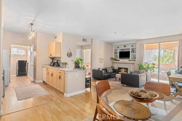 Nestled in the exclusive gated community of Madison Park Villas, this move-in-ready second-floor condo offers comfort, style, and convenience. Featuring 1 bedroom, 1 bathroom, and a brand new HVAC and water heater, this home is ideal for easy living. Inside, you’ll be welcomed by beautiful laminate wood flooring throughout, a cozy living room with a fireplace, and a sliding glass door that opens to the balcony, offering peek-a-boo mountain views. The well-equipped kitchen boasts: A breakfast nook and dining area, modern appliances, including a microwave, stove, and dishwasher, plenty of cabinet space, and a nearby laundry room for added convenience. Adjacent to the dining area, you’ll find a versatile bonus room that can be used as pantry storage or an extra closet. The primary bedroom includes a walk-in closet and a ceiling fan for optimal comfort. Additionally, the unit comes with a covered carport parking space and an open car space. Madison Park Villas offers resort style amenities, including: A swimming pool and spa, clubhouse, and gym/exercise room. Conveniently located near shopping centers and major freeways, this condo is a perfect blend of tranquility and accessibility.