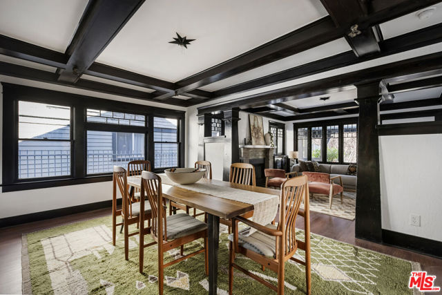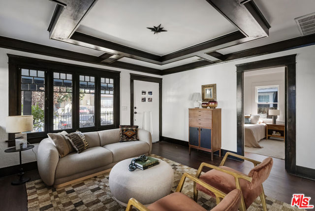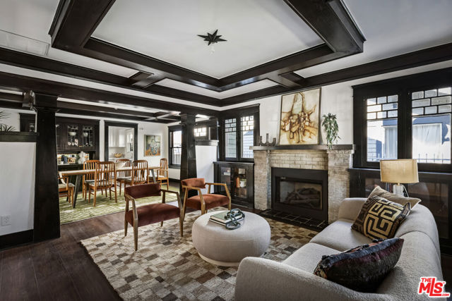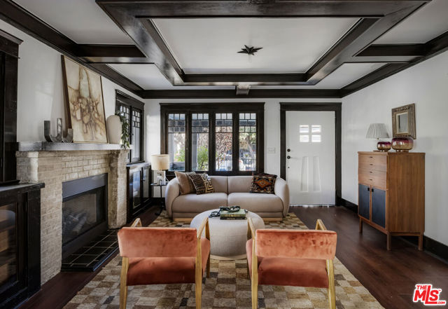 Step into this storybook 3-bedroom, 2-bath Craftsman bungalow, beautifully renovated while honoring every bit of its original 1909 character. Upon entry, the home exudes warmth and craftsmanship: built-ins with original leaded glass flank a cozy central fireplace, while coffered ceilings and period-inspired light fixtures bring a touch of timeless sophistication to every room. An oversized dining room invites gatherings beneath gorgeous beams, and the refreshed kitchen blends classic charm with modern updates – new quartz countertops, sink, stainless steel stove, hood, dishwasher, and recessed lighting. Freshly painted inside and out, the home feels both lovingly preserved and newly alive. Both bathrooms feature brand-new vanities, and the entire home also sports new luxury vinyl flooring throughout. Outside, new drought-resistant landscaping surrounds fully gated front and back yards with an electric gate for added privacy and ease. A dedicated laundry room adds everyday convenience, and the oversized finished garage, already equipped with electrical, brims with the potential to become a creative studio, rec room, or future ADU. Section 1 termite clearance is complete, so you can move right in and start enjoying your piece of California history before the holidays. Ideally located – just moments from the LA Memorial Coliseum, Natural History Museum, BMO Stadium, Exposition Park, and USC, with easy access to Downtown LA, the 110 & 10 freeways, and the Westside – this home offers the perfect blend of historic charm and city convenience.