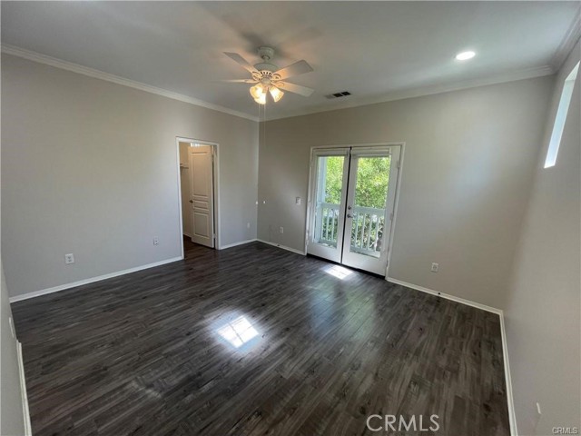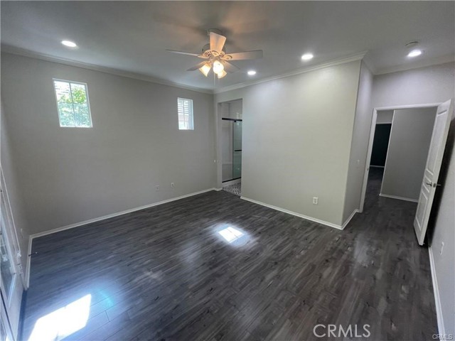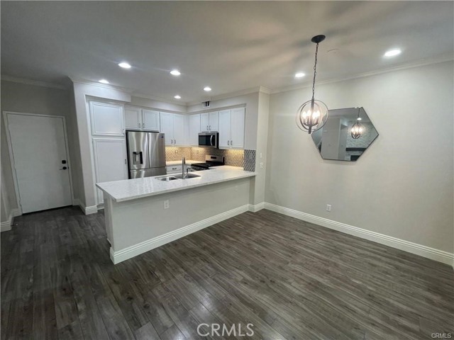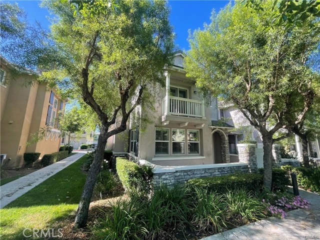 Fantastic upgraded 2 story condo inside the impeccable STRATHMORE COMMUNITY. This outstanding condo is well situated for maximum privacy. Laminate flooring throughout, pleasing 2-tone paint, LED lighting, window shutters, and cool A/C. Kitchen has been upgraded with quartz counters, newer stainless steel appliances including refrigerator, and tile backsplash. Downstairs 1/2 bath with large storage closet, upstairs stackable W/D, 3 bedrooms with ceiling fans, common area full bathroom with shower in tub. Primary bedroom and bathroom with quartz double sink, walk-in shower, and walk in closet. 2 car attached garage. Strathmore amenities include 3 gated entries, pool/spa, kids park, several large grass areas, gazebos, and located across the street from Victoria Gardens!