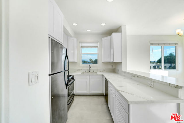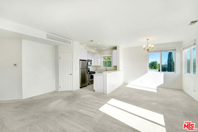 Experience elevated top-floor living in this fantastic newly remodeled 2-bedroom, 2-bathroom Penthouse. Corner-unit condo with unobstructed views all around. This sun-filled penthouse-style home boasts sweeping east and south-facing views, soaring ceilings, and an abundance of natural light throughout. Freshly repainted walls add a warm, inviting feel, while the smartly designed layout offers both comfort and functionality. The spacious living and dining area features oversized windows, a cozy fireplace, and seamless flow into a well-appointed kitchen with stainless steel appliances, stone countertops, and generous cabinet and storage space. The primary suite includes a large en suite bathroom with an oversized vanity, tiled tub and shower, and ample closet space. The second bedroom showcases treetop, city, and mountain views to the south, perfect for a home office or guest space. Additional highlights include an in-unit washer and dryer, two-car tandem parking in a gated garage, and secure building access. Tucked away on a quiet street near the vibrant NOHO Arts District and Toluca Lake West, you’re just minutes from top shops, dining, and local culture.