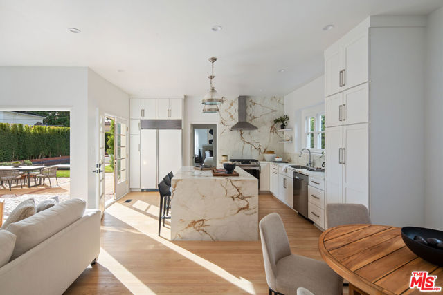 Located on one of the best streets in the Beverly Hills Flats, this beautifully reimagined 5 bedroom, 4.5 bathroom estate blends timeless elegance with modern comfort. Behind mature trees and a gated entry, the home opens to sun-filled interiors, generous volumes, and a spectacular indoor and outdoor flow that defines modern Beverly Hills living.Four spacious bedrooms are upstairs, including two primary suites with serene outlooks and spa inspired bathrooms, while a fifth bedroom downstairs offers ideal flexibility for guests or staff. All rooms are large and inviting, highlighted by a refined living room, formal dining room, sunlit library, and a brand new chef’s kitchen with a statement island, top tier appliances, and abundant space for cooking, gathering, and entertaining. Outdoors, the property showcases a deep, private lot framed by lush landscaping and a sun lit grassy backyard, creating a tranquil backdrop for the lap pool, spa, lounge areas, and effortless entertaining. Impressive, warm, and exceptionally private, this residence is just 2 minutes from the finest shopping, dining, schools, and services Beverly Hills has to offer.