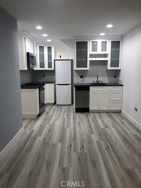 This contemporary suite by the beach includes high-end finishes such as stainless steel appliances (new dishwasher), quartz counter tops and a newly done kitchen. With a modernized bathroom and stylish river rock stand up shower (tub size), new floors throughout, new paint, AC/Heating, and the added bonus of having your own washer and dryer in the unit, this opportunity to live in luxury wishing close proximity from the beach is not to be overlooked. Includes a garage space that fits two tandem vehicles.