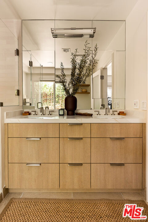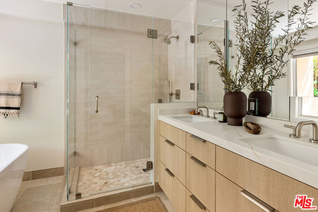 Just one block from Montana Avenue and seven short blocks from the beach, this beautifully updated townhome captures the essence of Santa Monica living. Spanning three levels, the light-filled residence features an open floor plan with spacious living areas and blonde hardwood floors that extend into the beautifully updated kitchen. A bright and versatile loft space above the main level opens to a large private deck, ideal for entertaining, working from home, or simply lounging with a beautiful view. Each level offers its own outdoor retreat, seamlessly blending indoor and outdoor living in true SoCal style. Just steps up from the private two-car garage with direct access to the unit and extensive floor-to-ceiling storage, you’ll find two bedrooms with newly installed hardwood floors. The serene primary suite includes a tranquil outdoor patio and a fully remodeled, spa-like ensuite bathroom featuring heated floors, dual vanities, a walk-in shower, and a freestanding soaking tub. The second bedroom enjoys abundant natural light and has its own private full bathroom. The first floor also features a newly remodeled powder room with a custom travertine sink and convenient access to the updated laundry area. The prime location is close to shops, restaurants, and the beach. This home offers the perfect combination of style, convenience, and comfort.