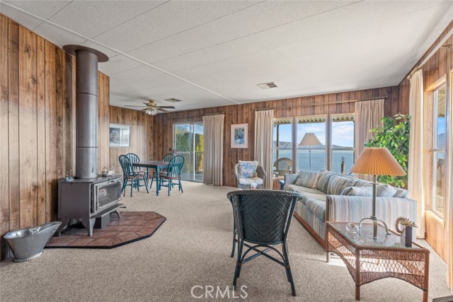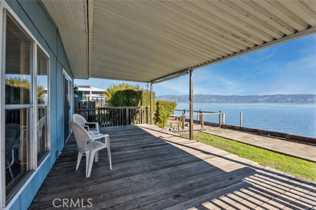 Discover serene lakeside living in this generous 1,440 sq ft home, perfectly positioned at the back of this lovely senior park for added privacy and direct lakefront access. Enjoy panoramic water views from the spacious living room, which flows beautifully into the dining area and bright kitchen. Step through the sliding door to the covered deck, the ideal spot for morning coffee or sunset unwinding. Stay comfortable year-round with new heating and air conditioning, and savor the cozy ambiance of the woodstove. Both bedrooms offer ample space, while the expansive laundry room is perfect for storage or crafting. A covered carport and detached storage building add convenience. All of this, right in the heart of Lakeport!