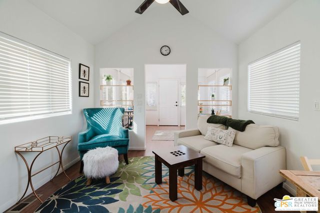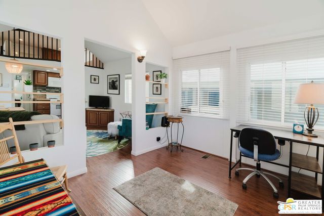 Discover charming, low-maintenance living in this move-in ready park model tiny home located in the sought-after 55+ community of Caliente Springs in Desert Hot Springs. Thoughtfully designed with vaulted ceilings, abundant natural light, and a flowing layout, the home features a convenient first-floor primary bedroom plus a spacious loft that can serve as a guest room, reading retreat, home office, yoga space, or cozy den. The bright living area connects to an efficient kitchen with plentiful cabinetry and counter space, while the sun-filled front room offers ideal flex space for dining, hobbies, or work. Outside, enjoy easy-care landscaping, a storage shed, and private driveway. Caliente Springs offers resort-style amenities including mineral hot spring pools and spas, a 9-hole executive golf course, pickleball and tennis courts, fitness center, sauna, dog park, clubhouse with social activities, and stunning desert and mountain views-all just minutes from Palm Springs. Whether you’re looking for a seasonal getaway, full-time residence, or smart downsize option, this home delivers big lifestyle living with small footprint ease. Come see how peaceful desert living can be!