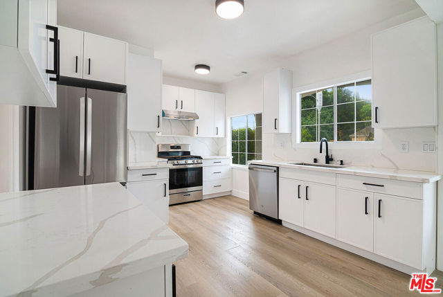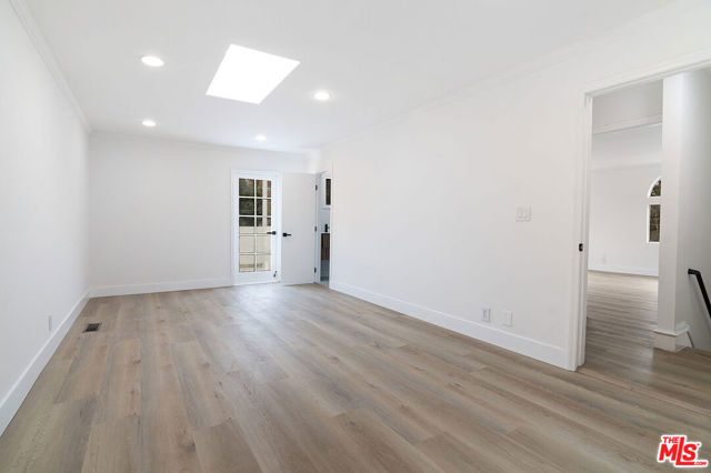 Brand new fully remodeled townhome-style duplex unit w/ all new appliances, in-unit laundry, new bathrooms and kitchen, lighting, floors, in one of the most desirable locations in town. 9.8/10 Walk Score, 9.2/10 Restaurant Score, and an unmatched 10/10 Shopping Score! Open concept living room w/ gas fireplace, dining room, and kitchen all drenched in natural sunlight. Separate laundry room w/ tons of storage + a walk-in pantry. Large downstairs bedroom with its own access outdoors makes for a perfect office or guest room, and has access to a nearby hall bathroom. 2 bedrooms upstairs are complete with walk in closets and en-suite bathrooms. The rear upstairs bedroom even has a private patio and a skylight. Be the first to live in this beautifully updated space in the heart of Beverly Grove. Ready to be rented immediately.