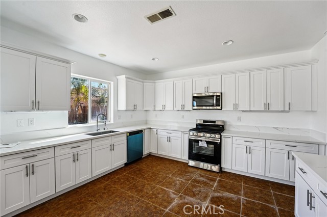 Beautifully updated 2-story home in a quiet West Hemet neighborhood! Built in 2006 with approx. 3,002 sq.ft., this spacious residence features a newly remodeled kitchen with quartz counters, modern cabinets, and stainless appliances. Bright open floor plan with formal living/dining rooms and large family room. Upstairs offers 4 bedrooms, including two master suites, plus a laundry room. Low-maintenance front yard, large backyard with room for a pool. Close to schools, parks, and shopping — move-in ready!