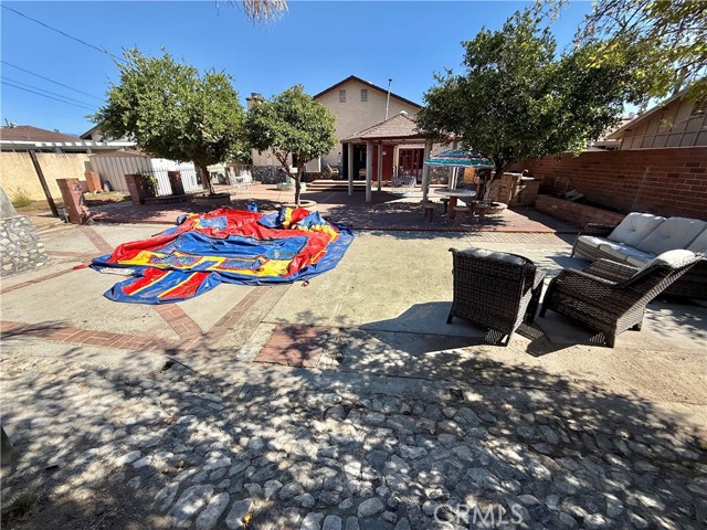Take a look at this spacious single-story home, offering plenty of room for a large family. The open and functional layout includes a kitchen with granite countertops overlooking large family and dining areas, creating an inviting space for everyday living and gatherings.rnNotable interior features include multiple ceiling fans, several skylights providing natural light, and a beautiful rock fireplace accented by a wood-beamed ceiling in the family room. French doors open to the backyard, seamlessly connecting indoor and outdoor spaces.rnThe large primary bedroom features a brick fireplace and a private sliding glass door that leads directly to the backyard. The spacious backyard offers a covered patio area, perfect for entertaining, along with a stone wood-burning pizza oven, adding to the home’s charm and outdoor appeal.rnThis property combines warmth, comfort, and functionality—ideal for family living and entertaining. A must-see home with great potential and timeless character!