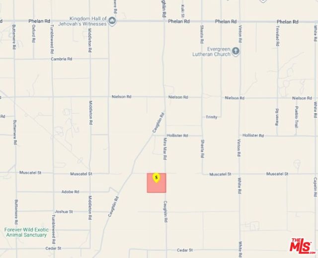 Discover an incredible opportunity to build your dream home on this beautiful vacant land. Ideally situated just south of Phelan Road, the property sits closer to the mountainsoffering breathtaking views of the Wrightwood mountains and sweeping valley views with sparkling city lights to the north.Surrounded by established homes, this parcel benefits from nearby street utilities, making future connections more convenient. Located on the corner of Mira Mar Road and Muscatel St, the property offers excellent access with no easements affecting usability.The sellers are highly motivated.For directional purposes only, the adjacent home to the north is 8079 Mira Mar Road, Phelan.Pass this house, and the land is located at the next cross street(Muscatel St) on the corner.Buyer to verify all information to their satisfaction, including but not limited to: zoning, land use, lot lines, utilities, and all other matters related to the property.