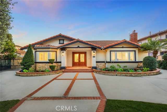 Gorgeous single-story home located on a beautifully landscaped 14,198 sq.ft. lot within the award-winning Arcadia Unified School District. Extensively updated and expanded in 2005, this residence offers 6 bedrooms and 4 bathrooms with an inviting open floor plan and exceptional indoor-outdoor living.The circular driveway welcomes you with manicured landscaping and mature trees. Inside, the spacious foyer opens to the formal living and dining areas with elegant cherry wood flooring, soaring ceilings, recessed LED lighting, and custom casement doors that highlight the serene backyard views.The remodeled chef’s kitchen features custom cherry wood cabinetry, premium stainless-steel appliances, granite countertops, and a built-in refrigerator. The luxurious primary suite includes a generous walk-in closet and a spa-inspired en-suite bathroom with a Swedish-style shower, steam sauna, and soaking tub.A true highlight of this home is the impressive tropical backyard retreat—perfect for entertaining. Enjoy the custom Trek deck, resort-style pool with waterfall, and covered BBQ area. The expansive yard also includes newer windows and doors, plantation shutters, and a 3-car detached garage offering abundant storage, a large laundry room with sink, and additional cabinetry.Smart-home features include security monitoring, lighting controls, and DVR camera surveillance. Located on a quiet street close to top-rated schools, shopping, restaurants, golf courses, and parks—this home truly offers the complete package.
