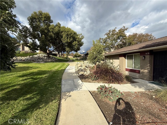 Single story end unit in the great community of “Upland Knolls”. 2 bedrooms plus a bonus room that can be converted to the 3rd bedroom. Dual pane energy efficient windows with plantation shutters. Beautiful greenbelt is facing the front of the house. Private patio with a wrought iron side gate leading to walkway that takes you to the driveway/greenbelt. An indoor laundry room w/built in cabinets & folding counter. Two attached car garage. Community features a swimming pool, spa & clubhouse. A must see!