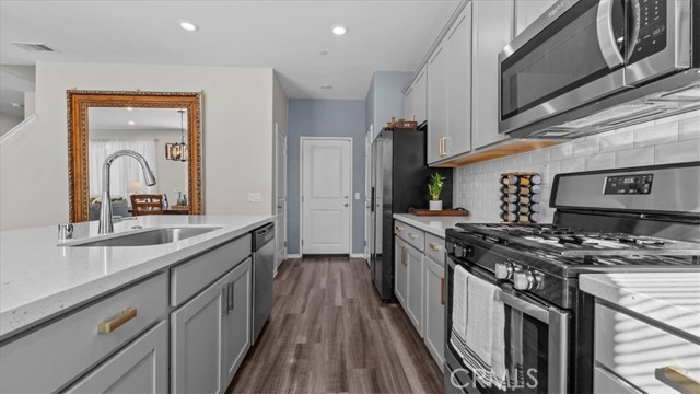 Is there a 4-bed home in Lake Elsinore under $600K with designer finishes and resort-style amenities? Welcome to 29132 Gardenia, an elegant 4-bedroom, 3-bathroom home built in 2020, located in a beautifully maintained community just off the 15 freeway and moments from Storm Stadium, shopping, and Canyon Lake.rnrnThoughtfully designed with both style and function in mind, this home offers 1,850 square feet of open-concept living filled with natural light and upgraded finishes. The kitchen is the centerpiece, featuring quartz countertops, stainless steel appliances, a spacious island with breakfast bar, and generous cabinetry. The adjoining dining and living areas are perfect for entertaining. A full bedroom and bathroom on the main floor provide flexible living for guests or multigenerational needs.rnrnUpstairs, the serene primary suite offers a spacious retreat with a walk-in closet, dual vanities, and a sleek walk-in shower. Two additional bedrooms and a third full bath ensure plenty of space for everyone. Modern comforts include a tankless water heater, central HVAC, and dual-pane windows for year-round efficiency.rnrnStep outside to enjoy a low-maintenance backyard ready for weekend lounging or casual gatherings. The attached 2-car garage and full laundry room add everyday convenience.rnrnLocated in a private HOA community with two pools, landscaped parks, and a clubhouse, this home is ideal for buyers seeking modern design, flexible layout, and lifestyle amenities in the heart of Lake Elsinore.