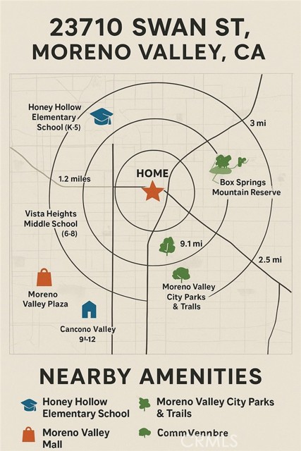 TRUST SALE (STANDARD SALE) – Conveniently located north of the 60 Freeway, this charming 2-bedroom, 2-bathroom home features fresh interior paint throughout. The primary bedroom includes a walk-in closet, a split bathroom layout, and a private area for the shower and toilet. The second bathroom, located in the hallway, provides easy access for guests. Enjoy a spacious living area with high ceilings, seamlessly connected to the dining area and kitchen, perfect for entertaining. The attached 2-car garage offers laundry hookups and direct access to the living room—ideal for convenience on rainy days. The large backyard provides ample space for expansion, including the potential to add a third bedroom, and features no rear neighbors for extra privacy. This home is now vacant and move-in ready, with cosmetic updates currently in progress. Located in a quiet area with minimal traffic, away from the high-traffic city-center. Honey Hollow Elementary School (K-5) 0.4 miles from the property, Vista Heights Middle School (6-8) 1.2 miles from the home, Canyon Springs High School 0.9 miles away. If you are waiting for interest rates to drop, expect others to do the same.